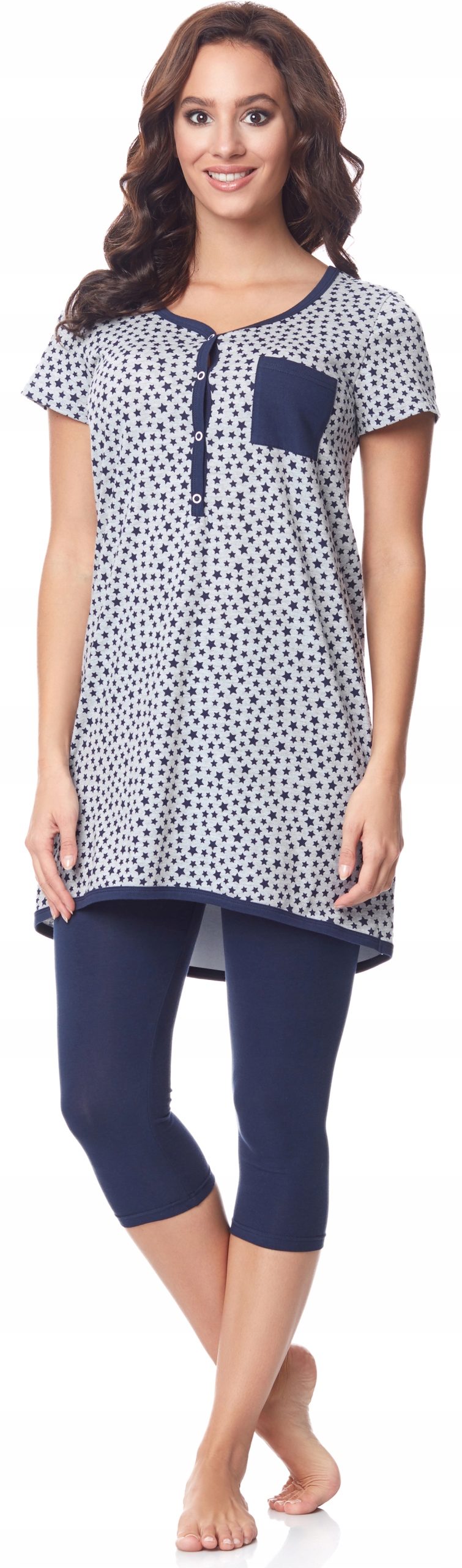 Piżama ciążowa Be Mammy to doskonały wybór dla przyszłych mam, które cenią sobie wygodę i funkcjonalność. Wykonana z wysokiej jakości materiałów, zapewnia komfort noszenia zarówno w czasie ciąży, jak i po porodzie. Krótkie legginsy z kieszeniami dodają praktyczności do codziennego użytkowania. Piżama w rozmiarze S prezentuje się w wielokolorowym wzorze, który dodaje uroku i świeżości. Góra wykonana z 92% bawełny i 8% poliestru, natomiast dół z 95% bawełny i 5% elastanu gwarantuje miękkość i elastyczność materiału. Zapewniając wygodę i swobodę ruchu, ta piżama stanie się ulubionym elementem garderoby każdej przyszłej mamy.