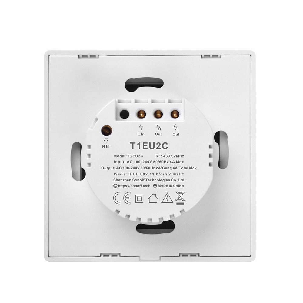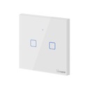 Inteligentny wyłącznik ścienny Sonoff T1EU2C 2 kanałowy jest przełącznikiem ściennym umożliwiającym użytkownikom zdalne włączanie / wyłączanie podłączonych dwóch obwodów zasilania oświetlenia z dowolnego miejsca w dowolnym czasie za pomocą aplikacji, dzięki pilotom RF433 Mhz w obrębie domu, bądź przy pomocy dotykowego panelu.
