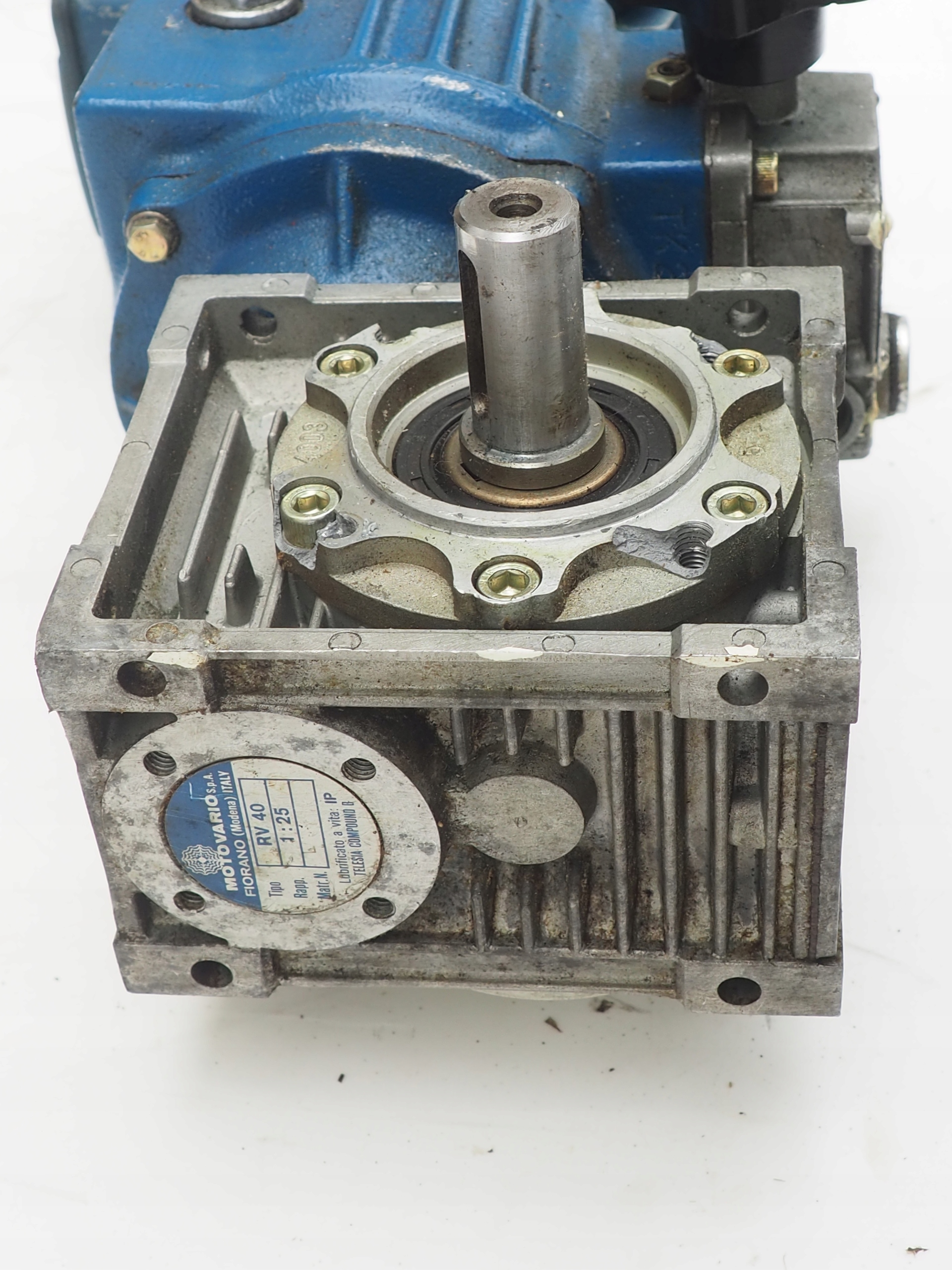 Motoreduktor z wariatorem TK/002 Motovario i przekładnią RV040 Regulacja obrotów o zakresie 7,2-35,2.Napięcie 400v 0,22kW. Wałek 19 mm.Używany sprawny, zdjęcia przedstawiają rzeczywisty stan.