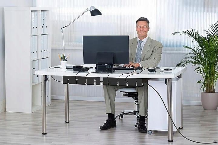 Wzbogać swoje stanowisko pracy o organizer kabli, aby zapewnić bezpieczeństwo powierzchni biurka oraz jego okolic i rozpocznij pracę bez obaw. Utrzymuj porządek pod biurkiem, aby zwiększyć produktywność i wydajność