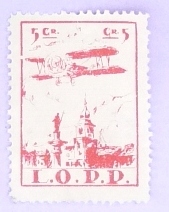 [1926 ]Nalepka w kolorze czerwonym, format 2.7x3.6 cm, stan dobry [ bez gumy niekasowany ][ dwupłatowiec nad placem Zamkowym w Warszawie ] [ KWESTARSTWO ][ LOPP ] [ II RP ] 114D