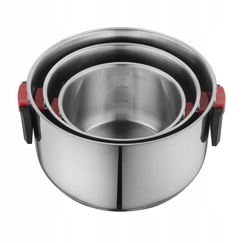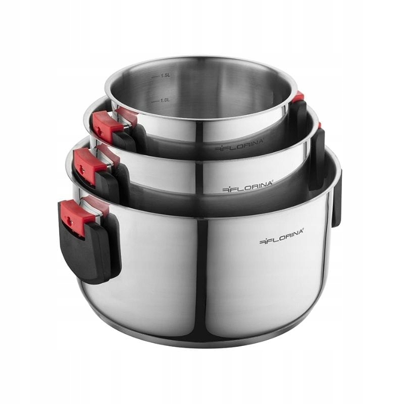 FLORINA Zestaw garnków nierdzewnych Space 6 elementów to połączenie doskonałej jakości, funkcjonalności i elegancji w jednym. Wykonane z wysokiej jakości stali nierdzewnej garnki zapewniają równomierne rozprowadzanie ciepła, co pozwala na szybkie i równomierne gotowanie potraw.
