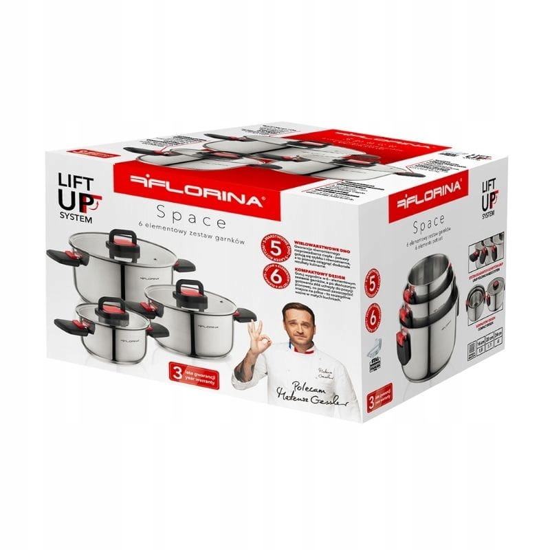 FLORINA Zestaw garnków nierdzewnych Space 6 elementów to nie tylko doskonałe narzędzia do gotowania, ale również elegancki dodatek, który podkreśla znaczenie kulinarnych doświadczeń w codziennym życiu.