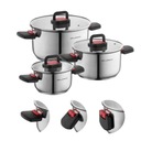 Ich innowacyjny design nie tylko sprawia, że są estetycznym elementem każdej kuchni, ale także funkcjonalnym narzędziem kulinarnym. Wystarczy spojrzeć na ergonomiczne uchwyty, które gwarantują komfort i pewność podczas przenoszenia, oraz wygodne pokrywki z systemem odpowietrzania, które pozwalają zachować pełną kontrolę nad procesem gotowania. Dodatkowym atutem jest innowacyjny system składanych uchwytów, który sprawia, że garnki są łatwe w przechowywaniu, co jest szczególnie praktyczne w niewielkich kuchniach.