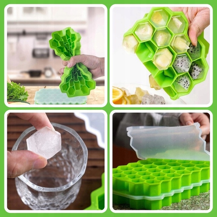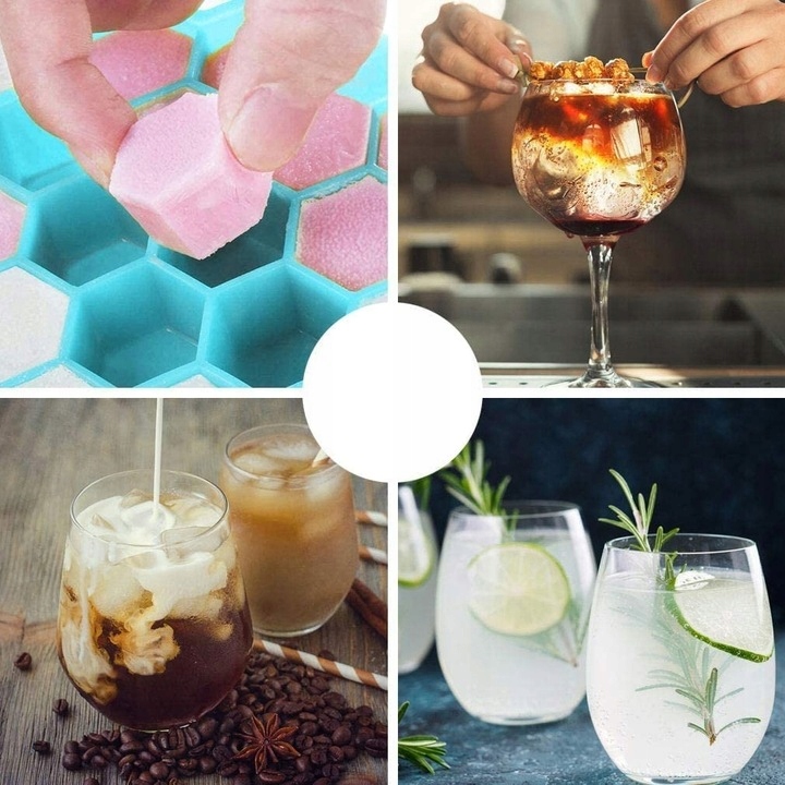 SILIKONOWA FORMA DO SZEŚCIOKĄTNYCH KOSTEK LODU - 37 KOSTEK