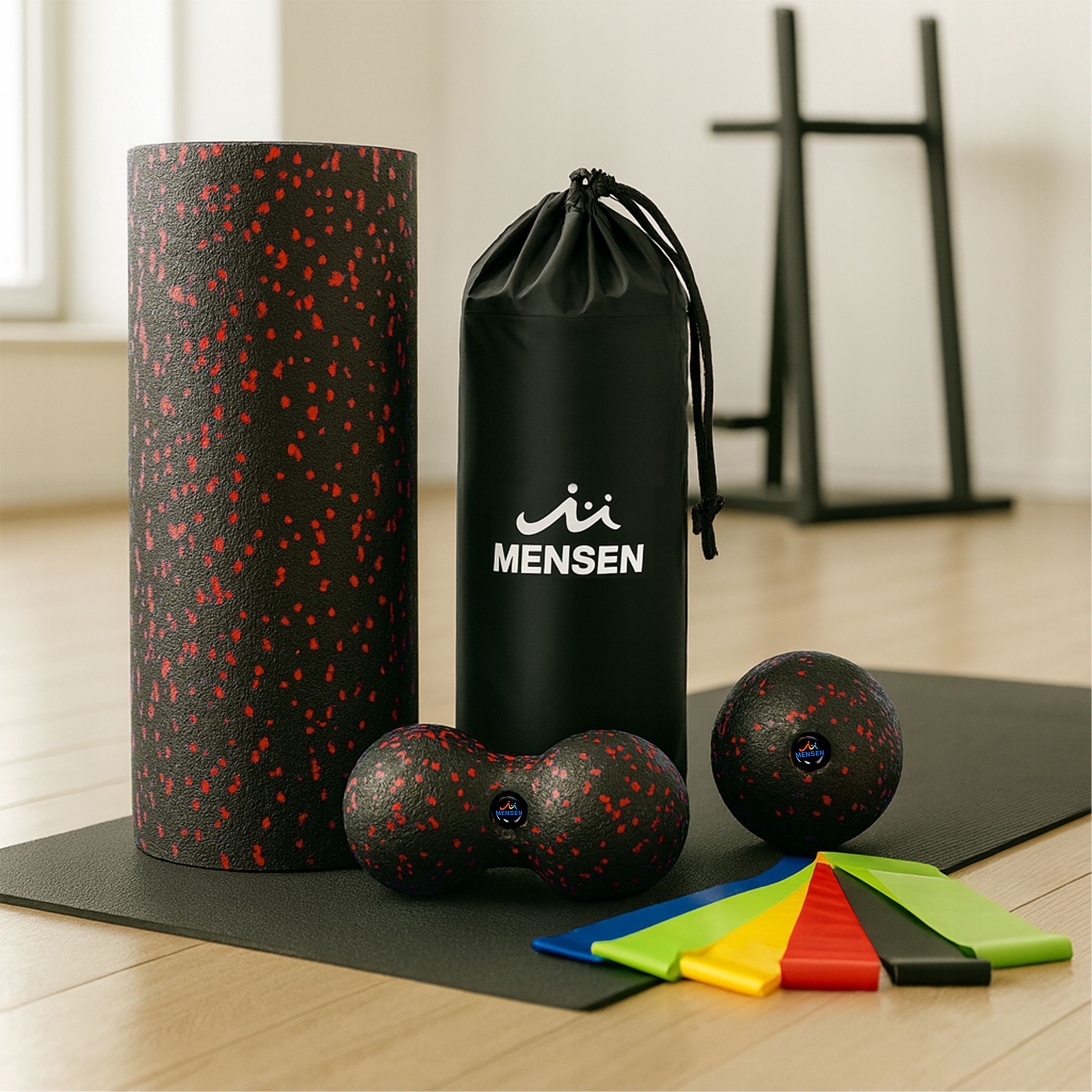 Zadbaj o ciało od stóp do głów. Ten komplet łączy regenerację powięzi i mięśni z prostym treningiem siłowym. Jedno etui, osiem elementów, setki zastosowań w domu, na sali i w podróży.