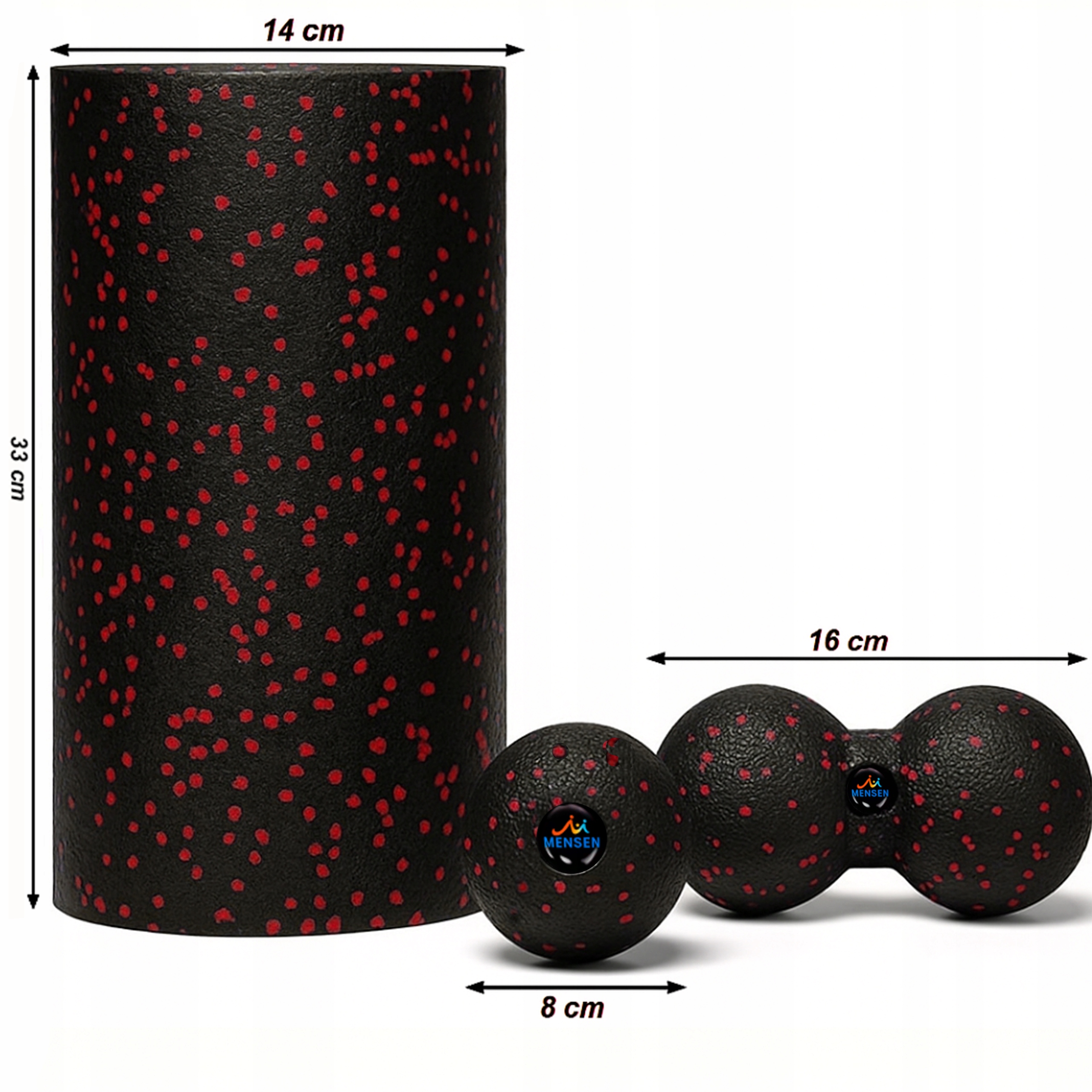▶ Trójka do automasażu: roller do dużych partii, piłka pojedyncza do punktów spustowych, piłka podwójna do pleców i karku bez nacisku na kręgosłup.