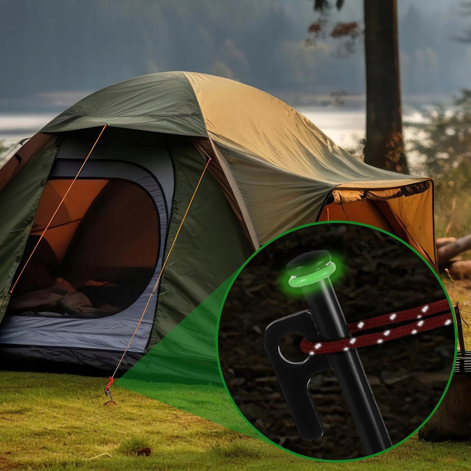 ✅ Nasze śledzie namiotowe są wyposażone w 6 pierścieni świetlnych, które świecą się automatycznie w warunkach słabego oświetlenia, oraz w 6 linków odblaskowych, które świecą w przypadku padania światła, stanowiąc dodatkowe przypomnienie o funkcjonalności. Zapewnij sobie dodatkową widoczność i bezpieczeństwo nawet w ciemnościach!