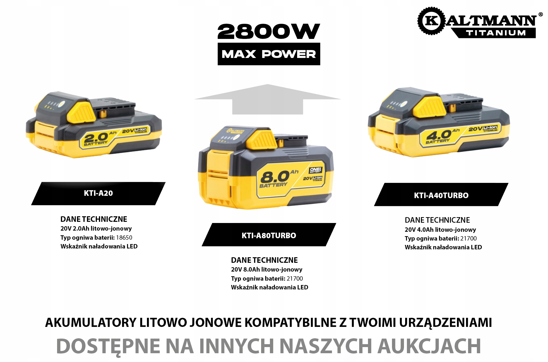 Na aukcji kupisz samo urządzenie- bez akumulatora i ładowarki. (Akumulator z serii KTI-A80 TURBO jest za duży i nie mieści się w pompie)