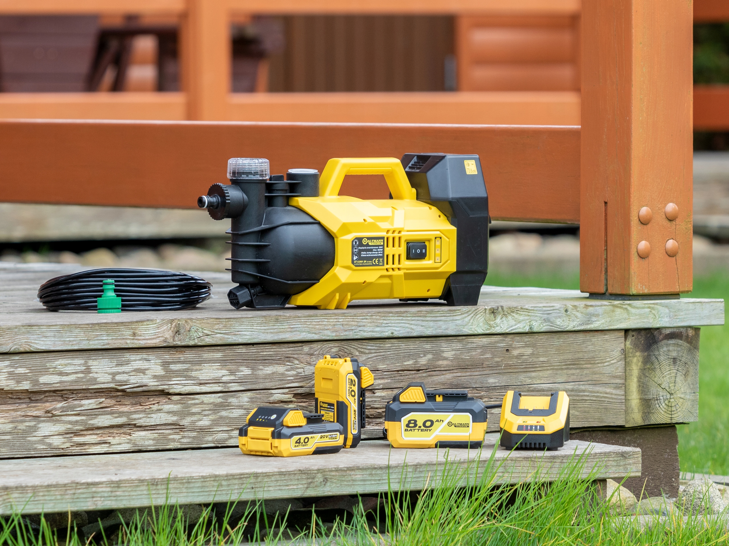 Uniwersalność zastosowania: Pompa ogrodowa akumulatorowa 20V 180W Kaltmann TITANIUM to niezastąpiony pomocnik w ogrodzie, na działce oraz wszędzie tam, gdzie brak stałego dostępu do prądu.