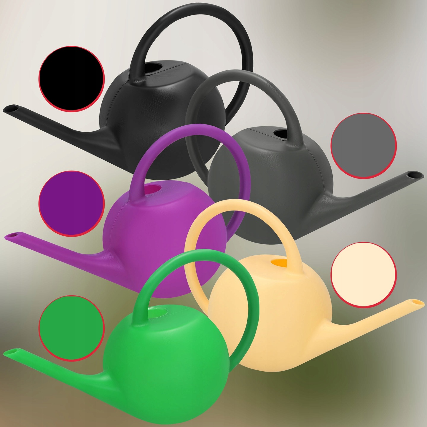 Konewka pochodzi z Europy, co zapewnia wysoką jakość i bezpieczeństwo użytkowania. Istnieje możliwość wyboru spośród kilku kolorów: szary, czarny, zielony, żółty oraz fioletowy, które będą wysyłane losowo.