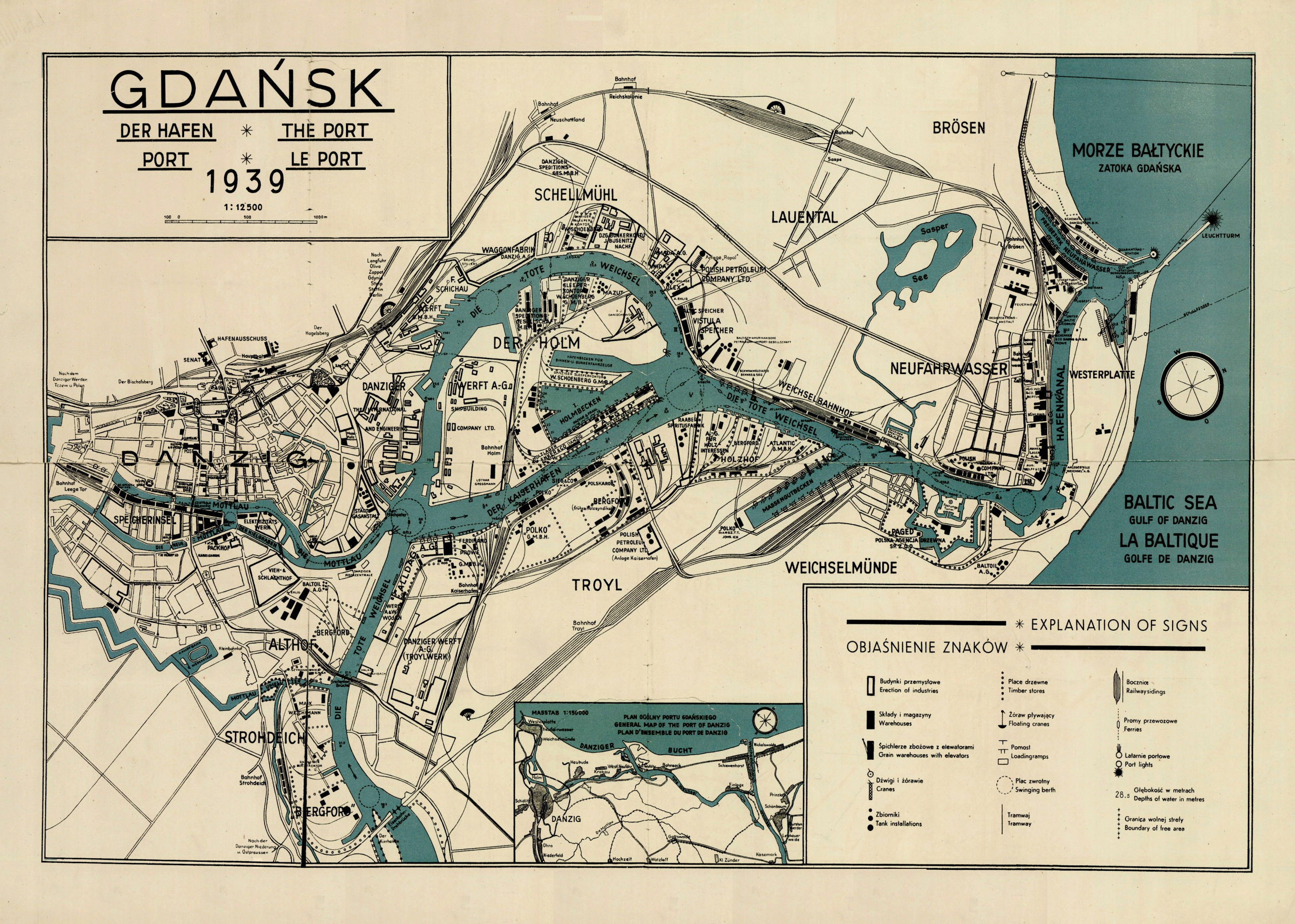 Stary plan Port Gdańsk Danzig der Hafen 1939r 120x90cm