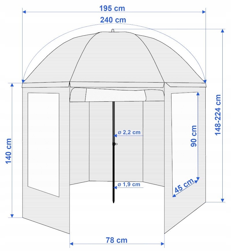 Parasol зонт имеет регулируемую высоту, поэтому мы можем без проблем настроить его на собственных потребностей. Весь зонтик прочный и устойчивый благодаря ребрам жесткости. Материал зонта водонепроницаем, а на стыках дополнительно закреплен клеенкой швами.