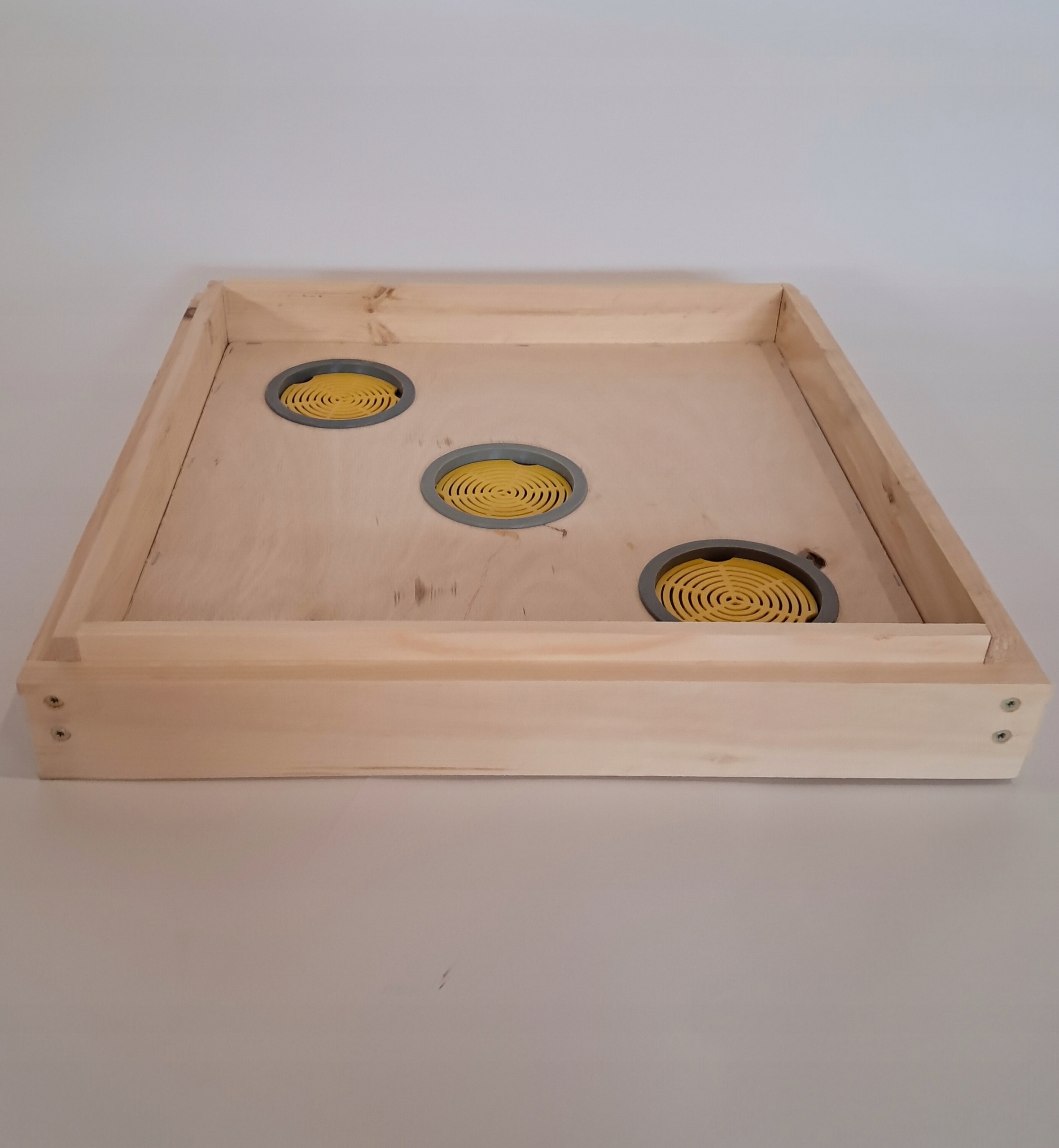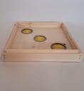 - Dennica wysoka higieniczna z wkładką do kontroli osypu warrozy. Dennica ma zamontowane lądowisko na zawiasach i jest zakrętka wiedeńska która umożliwia szybkie zamknięcie dennicy i transport pszczół.