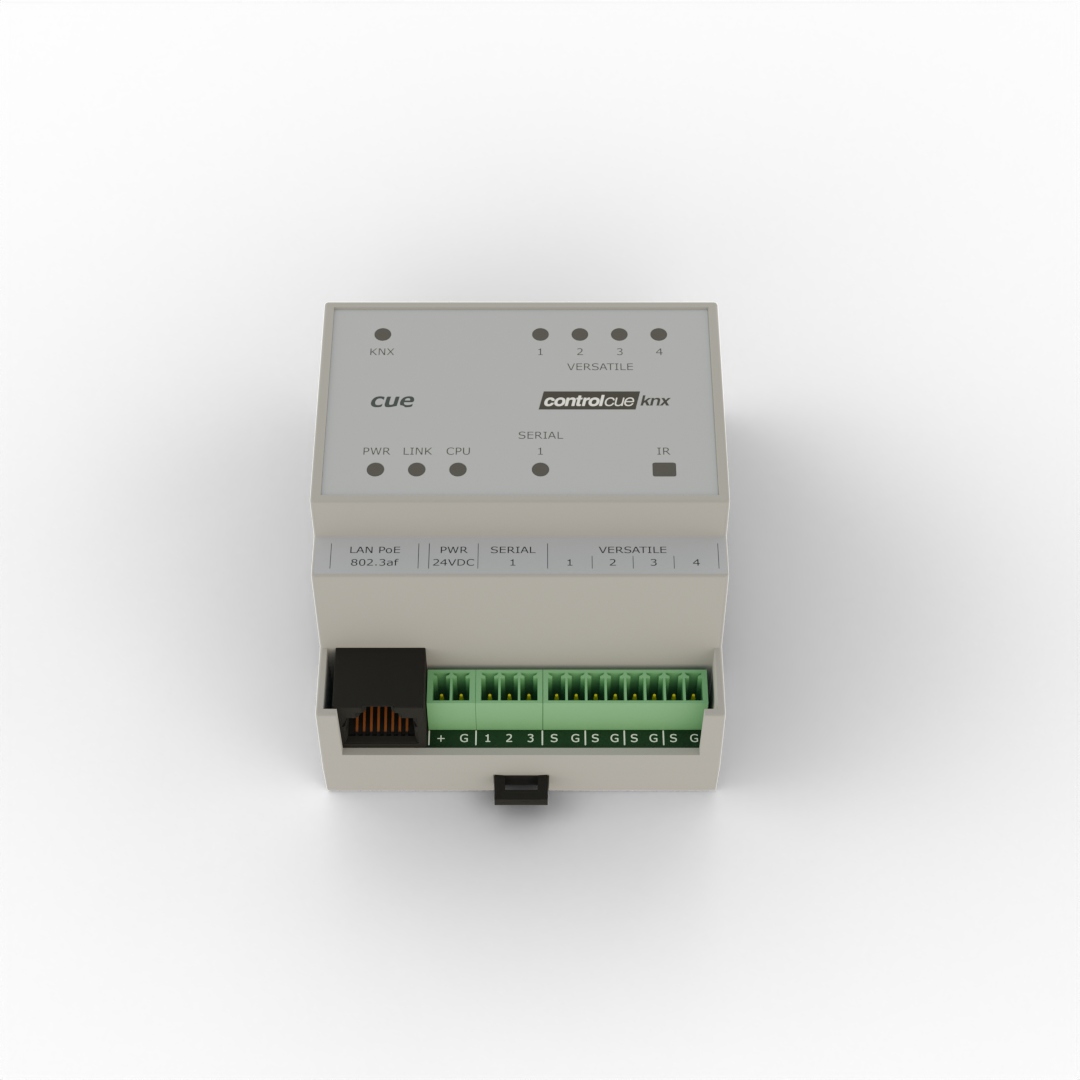 controlCUE-knx-d to w pełni funkcjonalny kontroler IP z portem KNX, jednym dwukierunkowym portem RS-232/485 i czterema uniwersalnymi portami. W pełni kompatybilny z panelami dotykowymi CUE, kontroler ten zapewnia dwukierunkowe połączenie pomiędzy Cue System a siecią KNX i może pracować jako samodzielne urządzenie.