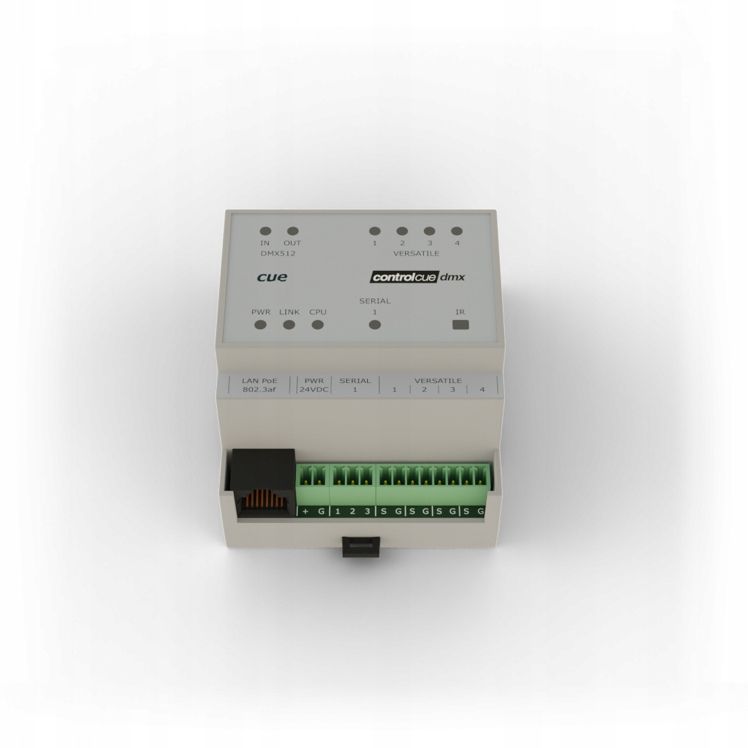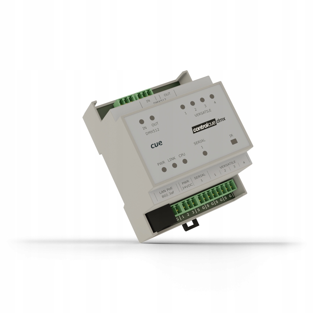 controlCUE-dmx-d to w pełni funkcjonalny kontroler IP z dwoma kanałami wejścia/wyjścia DMX512, jednym dwukierunkowym portem RS-232/485 i czterema uniwersalnymi portami. W pełni kompatybilny z panelami dotykowymi CUE, kontroler ten zapewnia połączenie pomiędzy Cue System i magistralą DMX512 i może pracować jako samodzielne urządzenie.