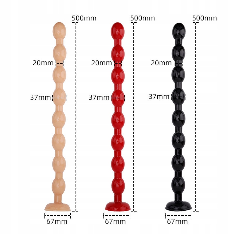 Jest to profesjonalny produkt dla osób pragnących niesamowitych doznań. Ich wielką zaletą jest długość aż 50 cm! Mocna przyssawka pozwala przymocować kulki do dowolnej gładkiej powierzchni i zabawę bez użycia rąk. Aby zabawa była jeszcze przyjemniejsza, zalecamy użycie lubrykantu na bazie wody lub silikonu. Po zakończeniu penetracji należy umyć produkt w ciepłej wodzie z delikatnym mydłem.