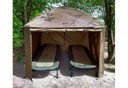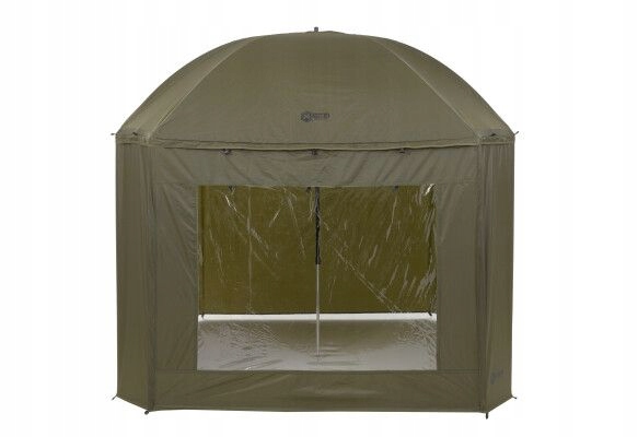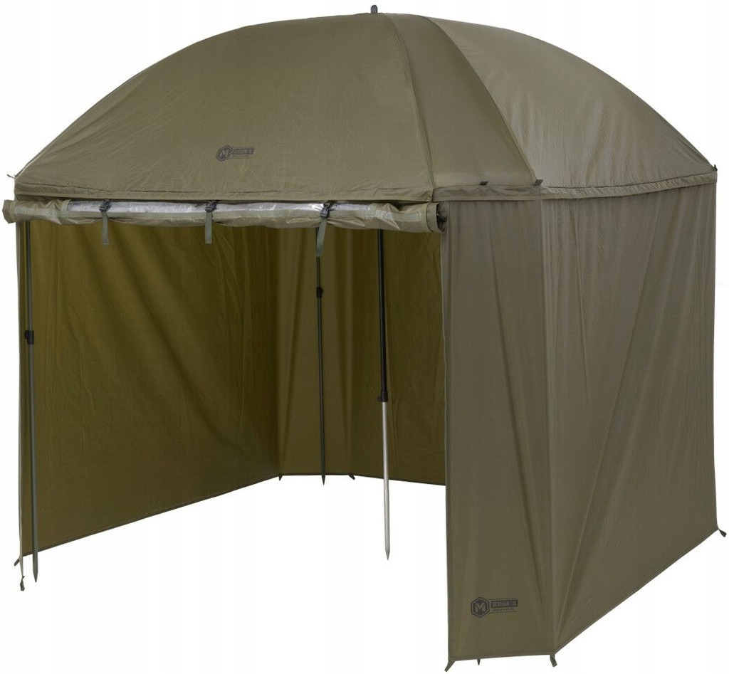 Parasol Mivardi Session Umbrella XL z pełnym pokryciem bocznym to parasol o kwadratowym kształcie i ogromnych rozmiarach, który może pomieścić dwie duże leżanki wędkarskie. Jego konstrukcja i użyte materiały zapewniają wysoką sztywność, stabilność i trwałość, szczególnie w silnych wiatrach. Wysokiej jakości baldachim z nylonu oferuje kolumnę wodną 8000mm i całkowicie zaklejone szwy. Boczny panel jest przymocowany dookoła mocnym zamkiem błyskawicznym, a przedni panel z dużym oknem można łatwo rozpiąć i zwinąć. W warunkach wietrznych parasol można ustabilizować za pomocą czterech lin kotwicznych.