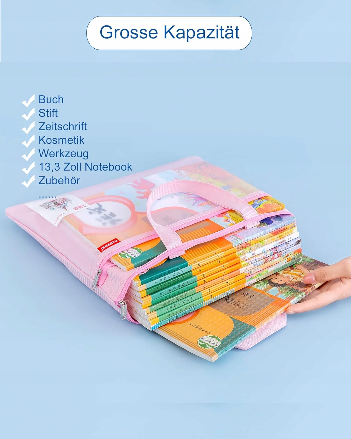 Torba na dokumenty A4 zapinana na zamek - Otwór na zamek błyskawiczny zapobiega wypadaniu i zgubieniu papieru lub dokumentów, pełniąc bezpieczną rolę ochronną. Zamek błyskawiczny jest bardzo gładki i łatwy w obsłudze.