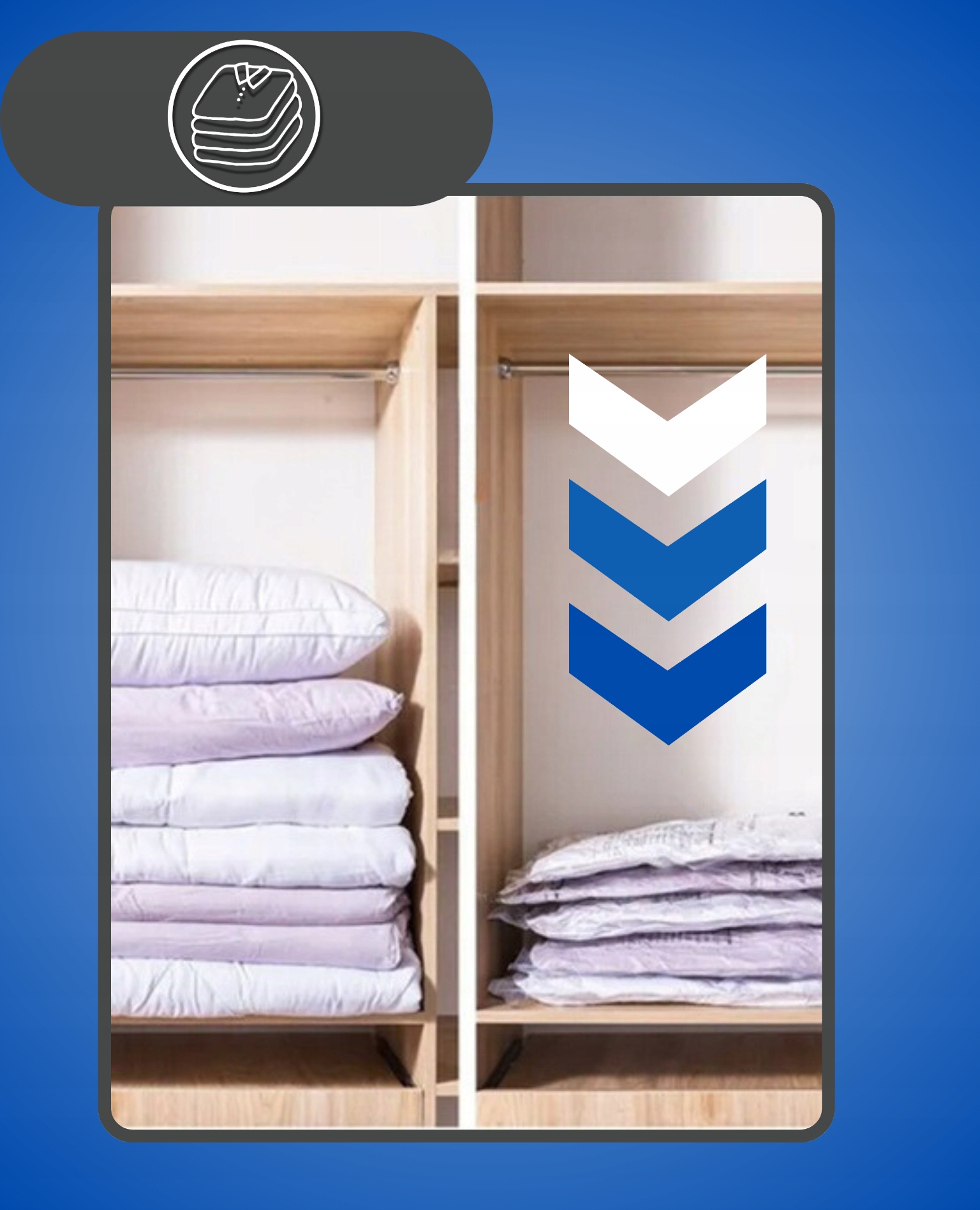 ✅ Worki zmniejszają objętość zawartości nawet o 80%, a Ty zyskujesz więcej przestrzeni w swojej szafie, szufladzie, czy też walizce.