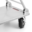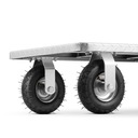 7. Tylne koła pneumatyczne skrętne 360° o średnicy 200mm zapewniające wyjątkową łatwość manewrowania wózkiem nawet pod dużym obciążeniem. Koła osadzone są na mocnym stalowym ocynkowanym widelcu