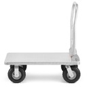 Powierzchnia platformy wózka posiada specjalne ryflowania - przetłoczenia w kształcie łezki, które poprawiają sztywność blachy oraz zapewniają antypoślizgowość powierzchni platformy, przez co ładunek mniej będzie przemieszczał się podczas przewożenia na platformie.