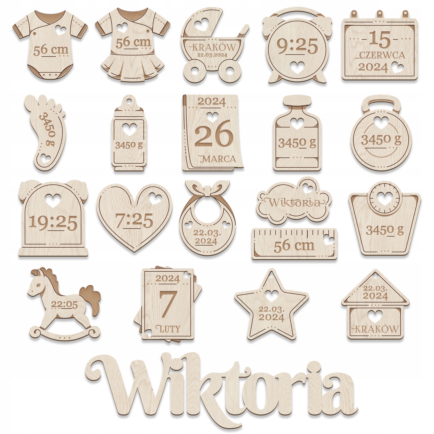 Dane do umieszczenia na metryczce: data urodzenia, godzina, wzrost, waga, imię (opcjonalnie miejscowość)
