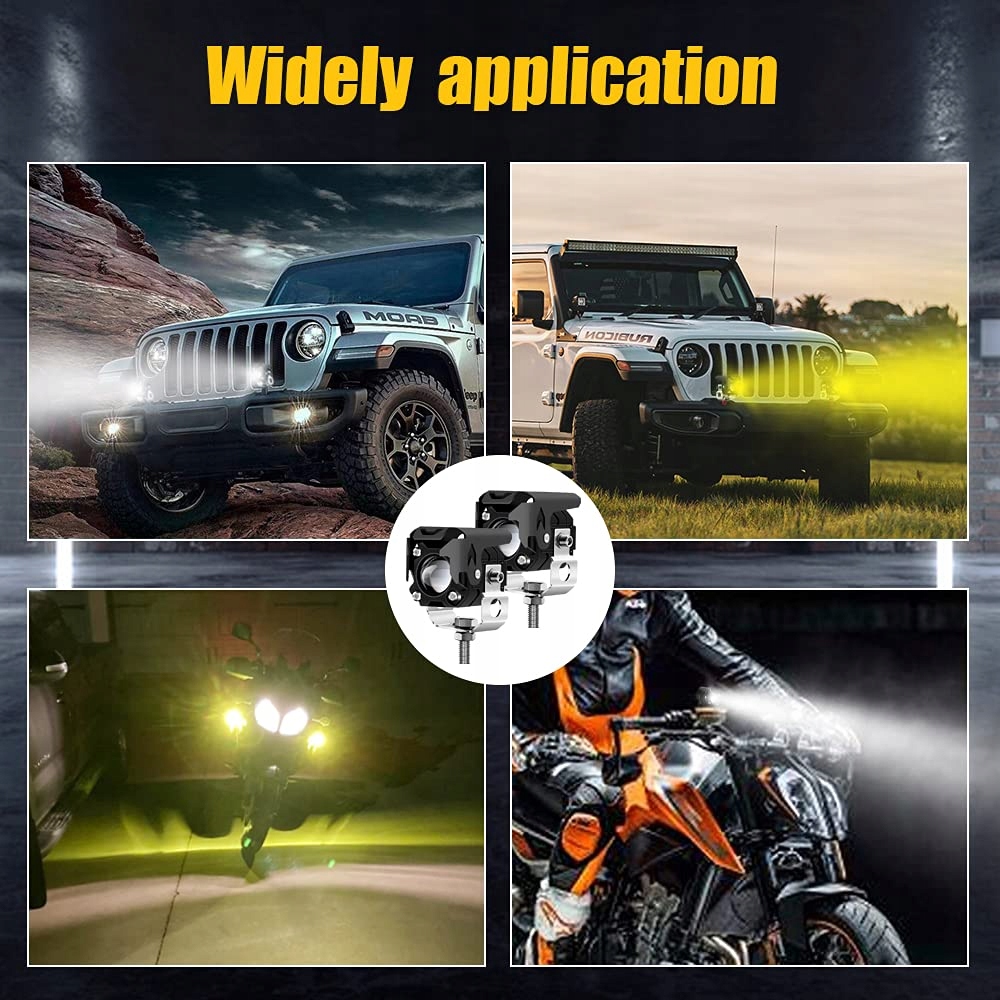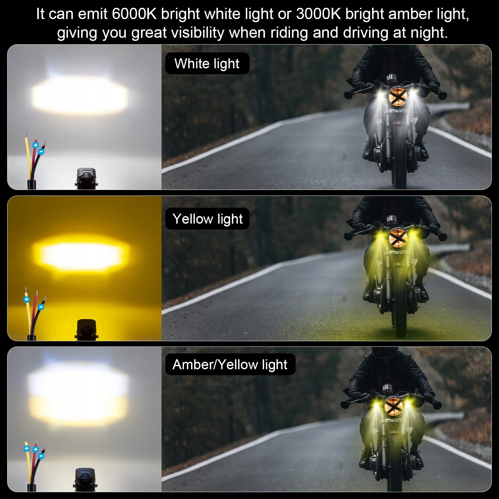 kapsułki LED mają żółte światło, białe światło, żółty + trzy białe tryby świecenia, bursztyn ma bardzo dużą siłę penetracji, może być żółtego światła 3000 K jako światła przeciwmgielnego; Światło rozproszone jest bardziej skoncentrowane i ma dostępne napromieniowania, 6000 K jako białe światło drogowe, Konstrukcja z trzema trybami oświetlenia umożliwia przełączanie świateł w czasie, aby dostosować się do różnych warunków.