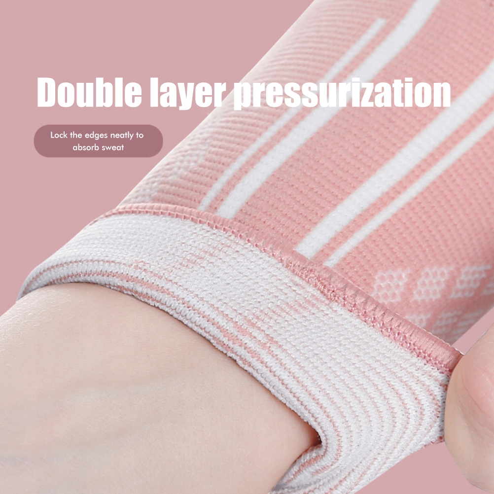 3. Gumka u góry każdego rękawa przedramienia utrzymuje je na miejscu. Zapewnia kompresję.
