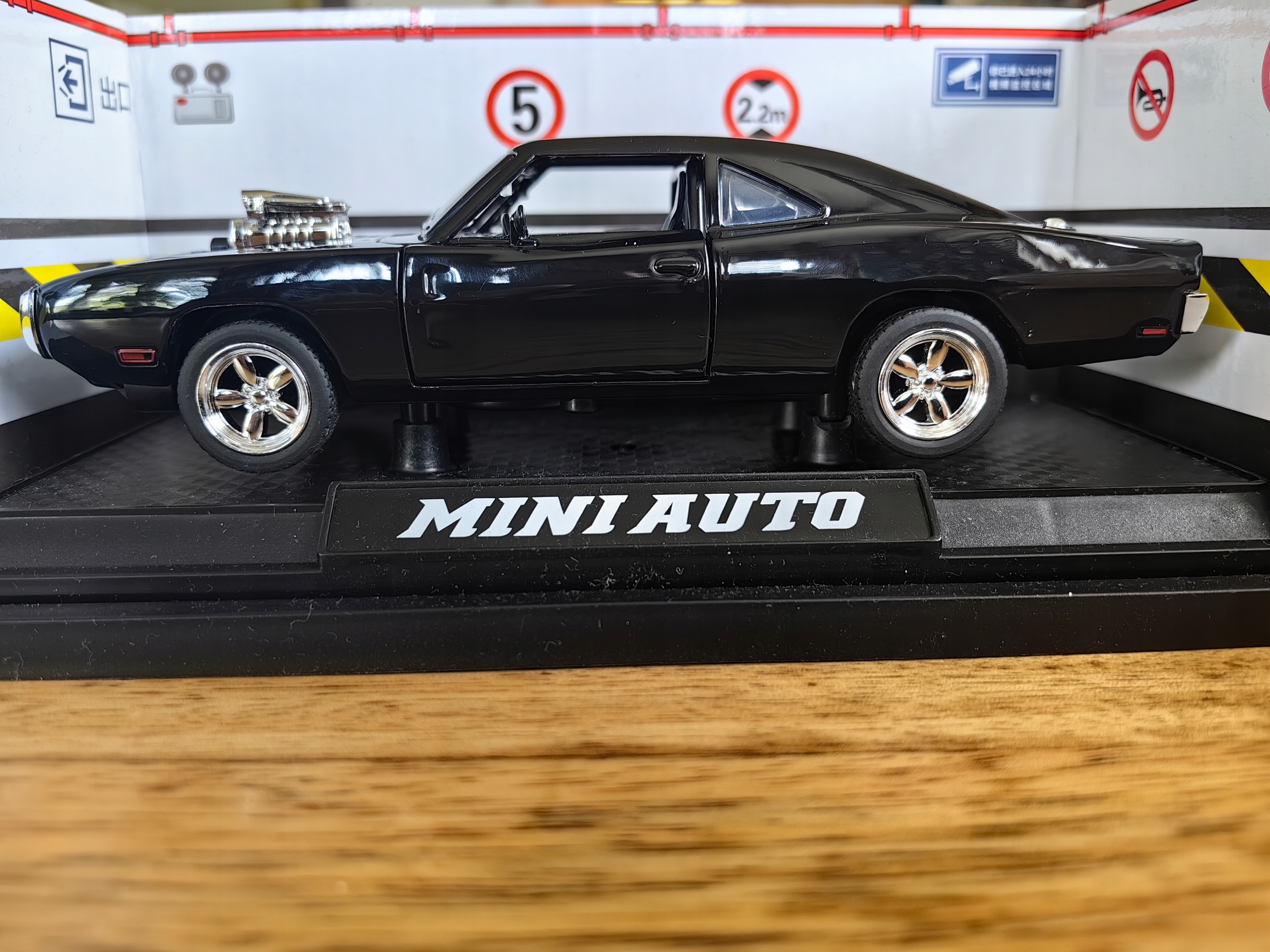 Świetnej jakości model Dodge Charger 1970 R/T w skali 1:32 (dokładne wymiary na zdjęciu).
