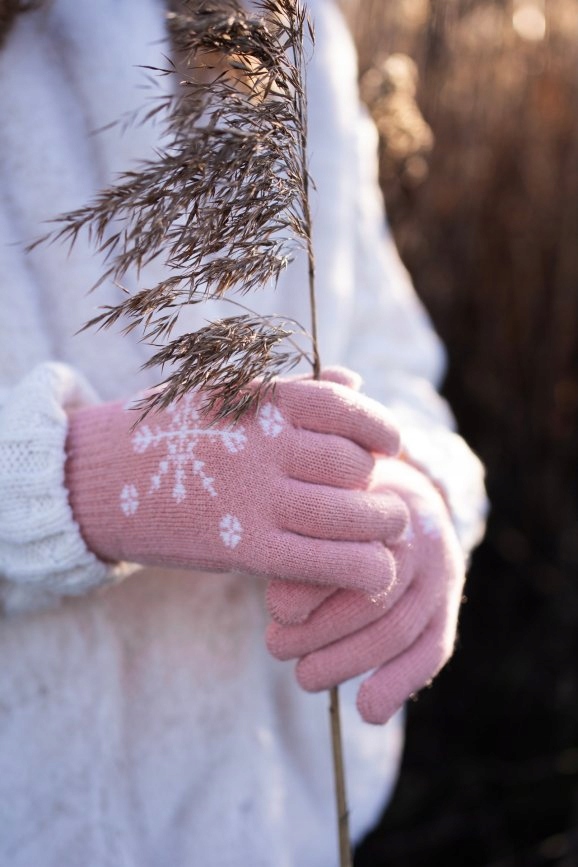 Dziecięce rękawiczki ozdobione zimowym motywem.