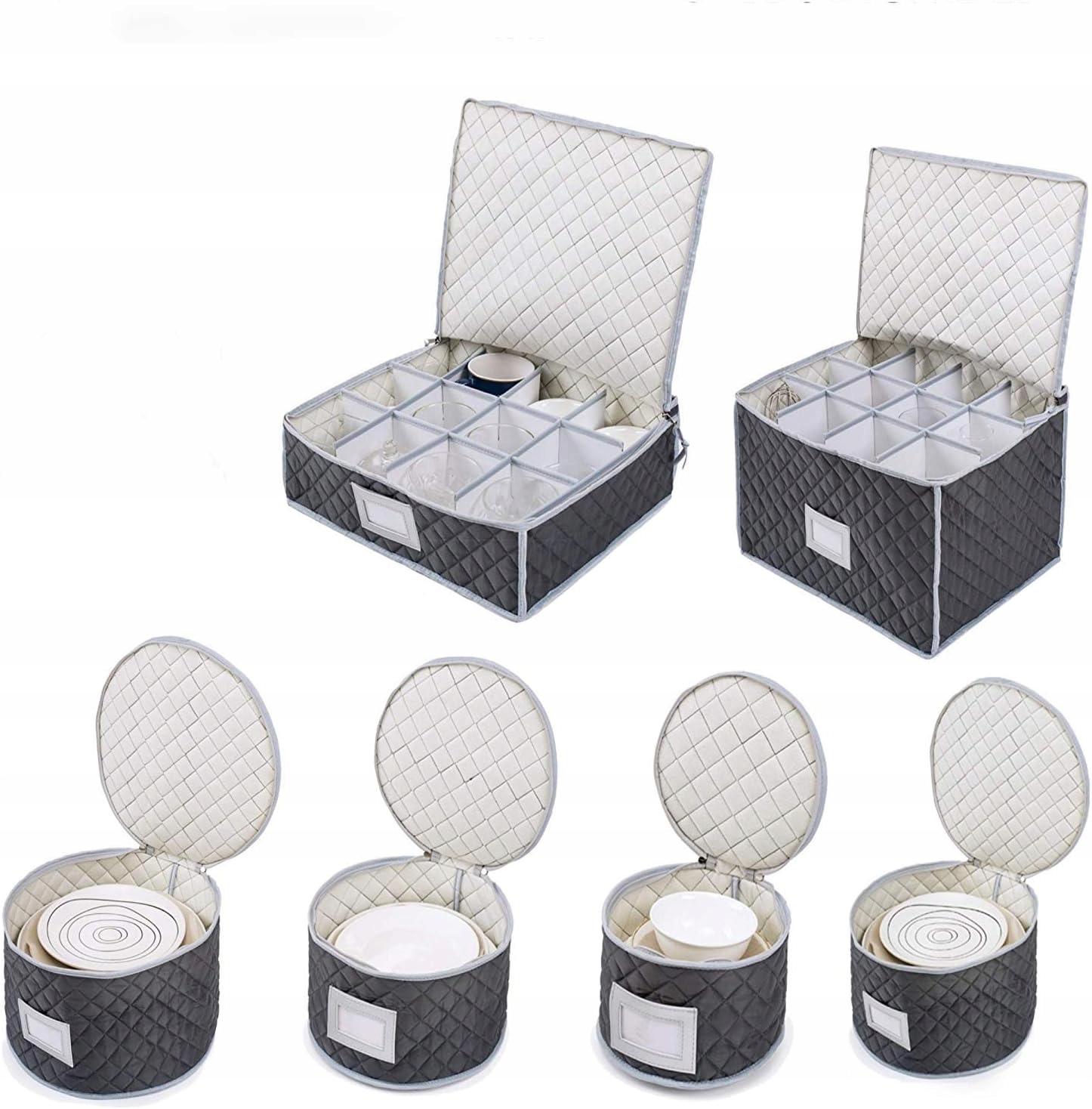 Ciesz się doskonałą ochroną zastawy stołowej dzięki naszym pojemnikom do przechowywania naczyń wyposażonym w grube, wyściełane etui z tkaniny i gładko przesuwający się zamek błyskawiczny zapewniający bezpieczne zamknięcie.