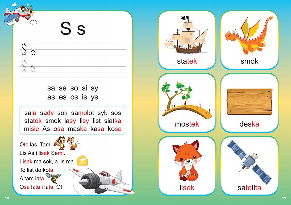 Książka wprowadza literki zgodnie z intuicyjną kolejnością, która pozwala sprawnie budować zasób możliwych do odczytania słów. Literkom towarzyszą najpierw pojedyncze słowa, potem krótkie, proste czytanki, a także możliwość poćwiczenia pisania danej literki. Atutem jest bogato ilustrowany dział zawierający pojedyncze wyrazy do czytania, przygotowany z myślą o najmłodszych użytkownikach, oraz czytanki, w których część słów zastąpiona jest obrazkami, przez co czytając, trzeba jednocześnie rozwiązywać graficzne zagadki. Dzieci kochają takie zabawy i bez wątpienia będą zachwycone Elementarzem...!