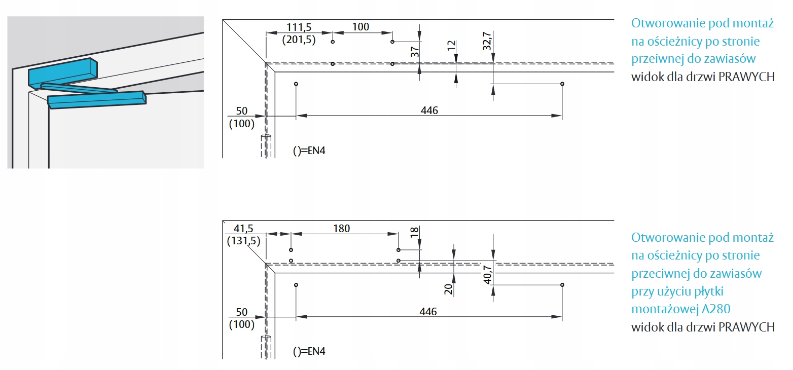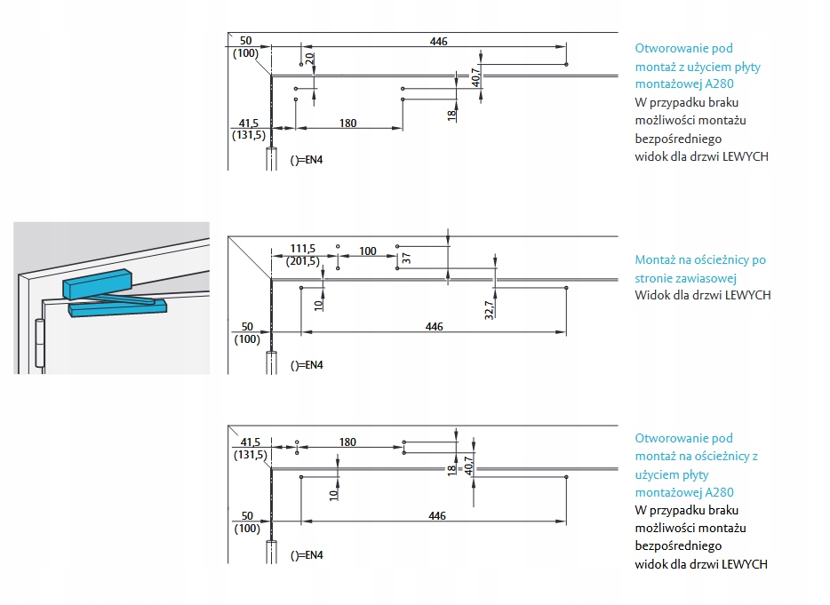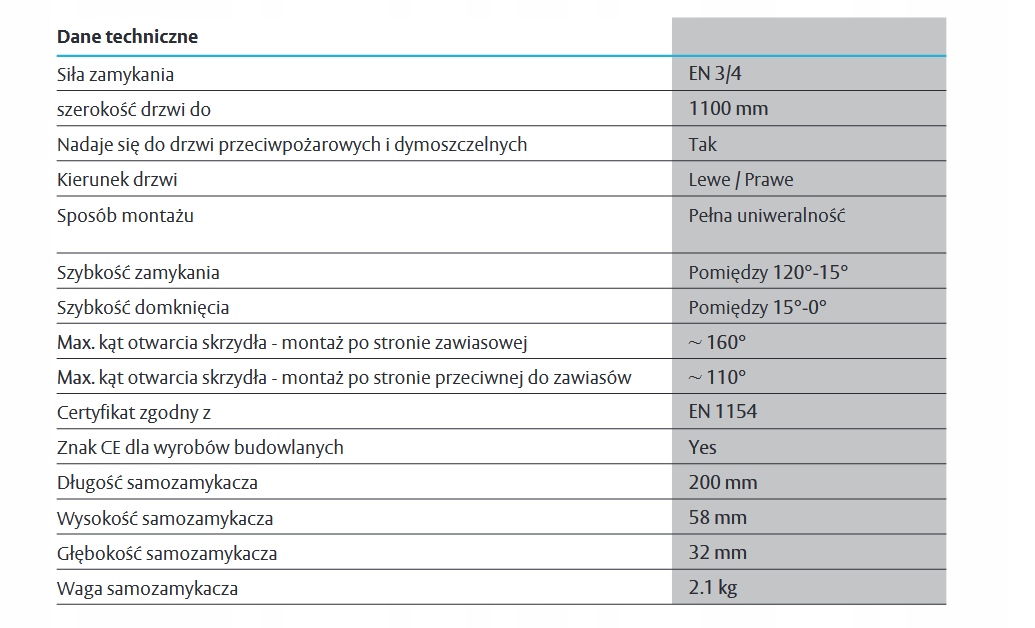 Samozamykacz Assa Abloy z szyną ślizgową pracującą w technologi Cam-Motion. Spełnia wymagania w ramach budownictwa bez barier (EA / CEN TR 15894). Certyfikowany zgodnie z EN 1154, siła EN 3/4, do drzwi jednoskrzydłowych o szerokości skrzydła do 1100mm i ciężarze do 80kg.