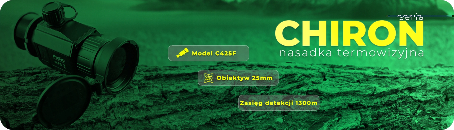 PFI-C425F to zaawansowana nasadka termowizyjna Pixfra Chiron, który zapewnia wyjątkową jakość obrazu i szeroki zakres zastosowań. Dzięki sensorowi termicznemu o rozdzielczości 384x288 pikseli oraz obiektywowi o średnicy 25 mm, ta nasadka umożliwia precyzyjne obserwacje na odległość do 1300 metrów.