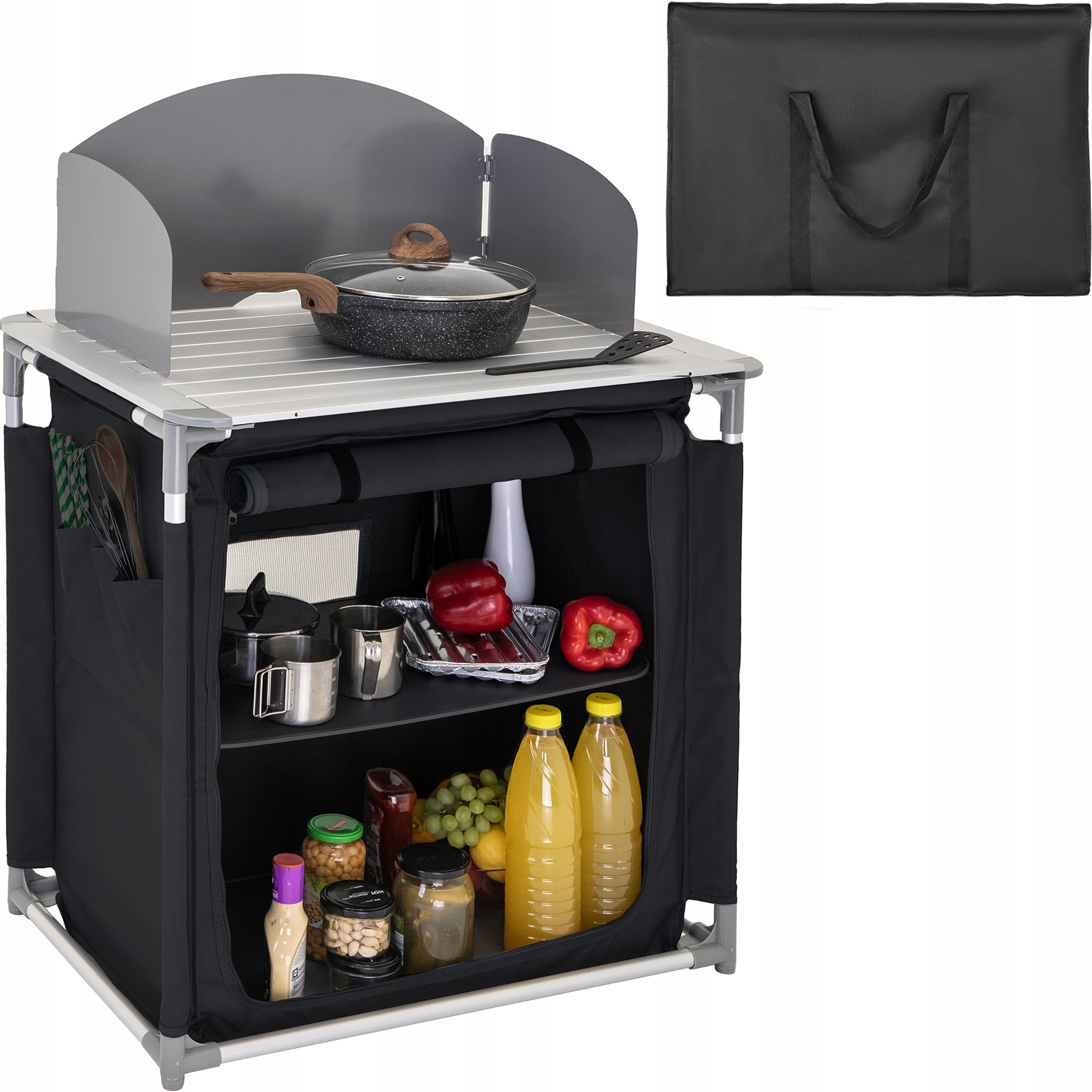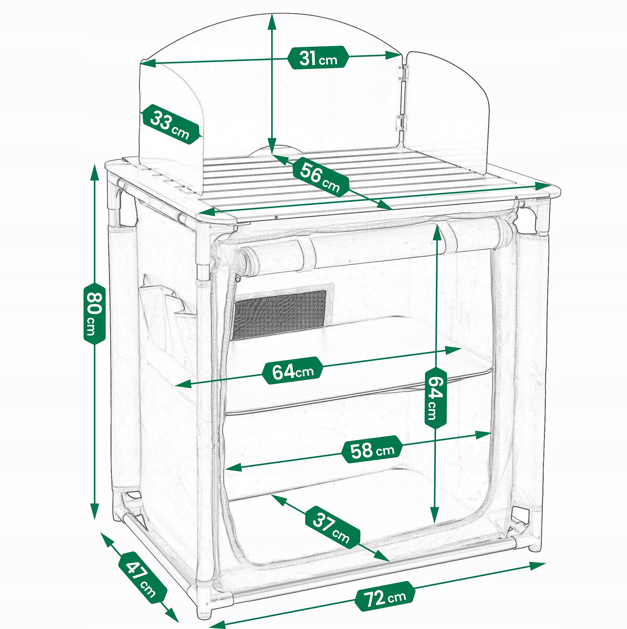 ➡️Dużo pojemność: Kuchnia turystyczna posiada metalowy blat pozwalający na postawienie kuchenki. W zestawie znajduje się podwieszana szafka, która posiada dwie utwardzone półki umożliwiające przechowywanie jedzenia, naczyń i innych niezbędnych akcesoriów.