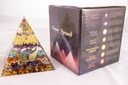 Ta piramidka zapewnia korzystne oddziaływanie na każdą z siedmiu czakr, a dzięki kamieniom, minerałom, które nie tylko wyglądają pięknie, ale także posiadają własną moc, energię i uzdrowienie, wzmagają cenne oddziaływanie oczyszczania i odblokowania czakr przynosząc dobro, szczęście, zdrowie.