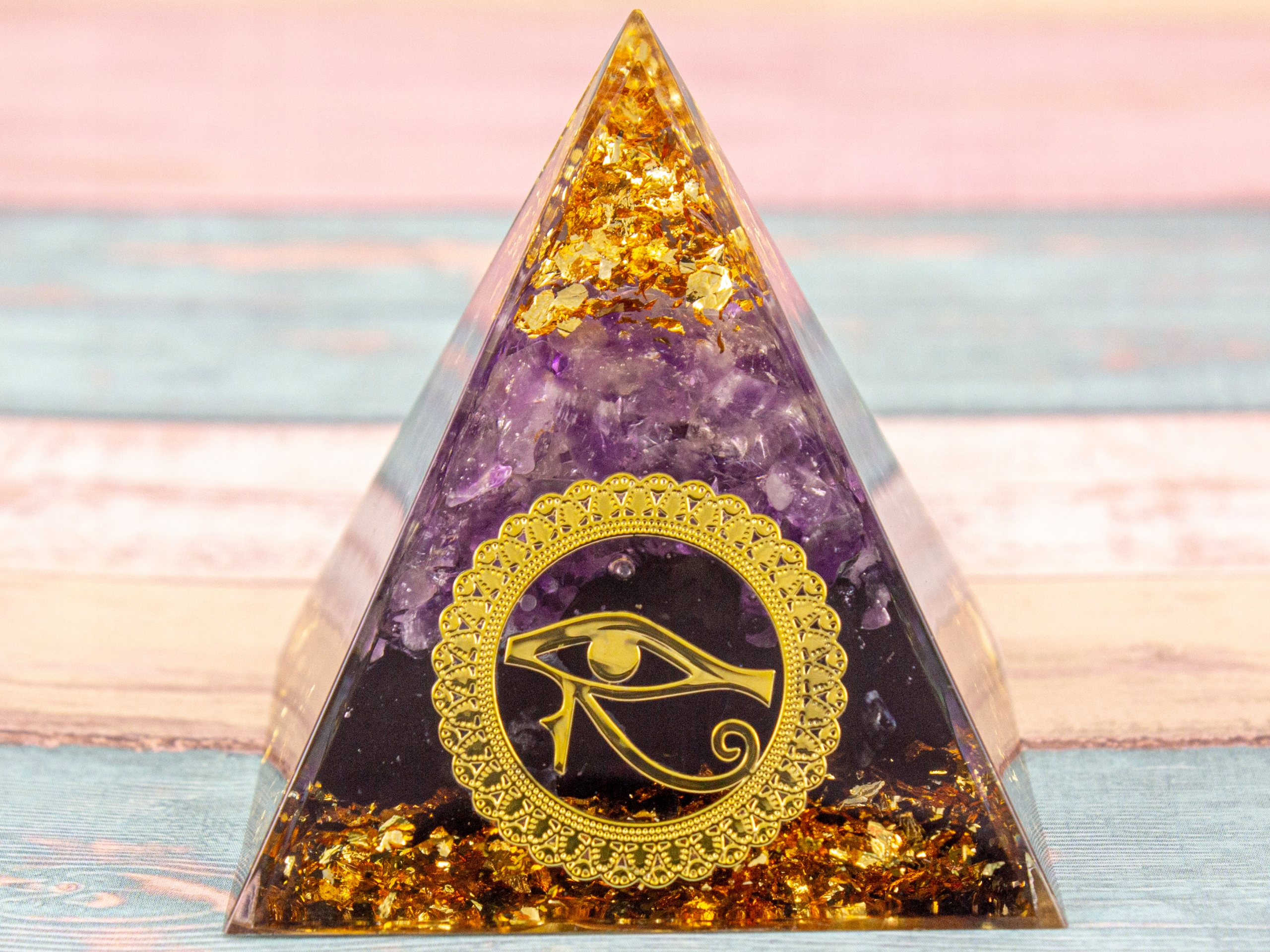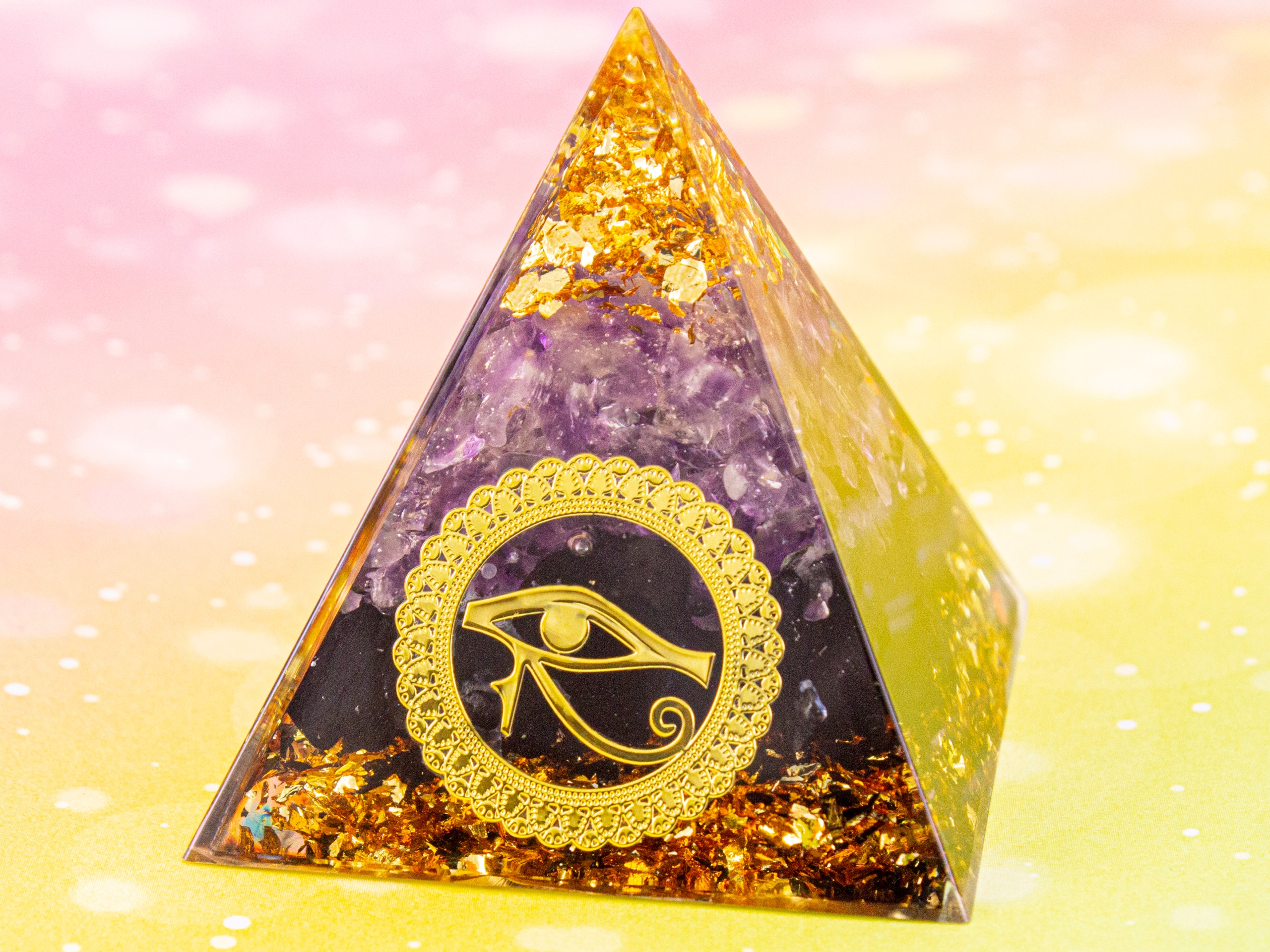 Модель PIRAMIDA ORGONITOWA AMETYST OBSYDIAN OKO HORUSA