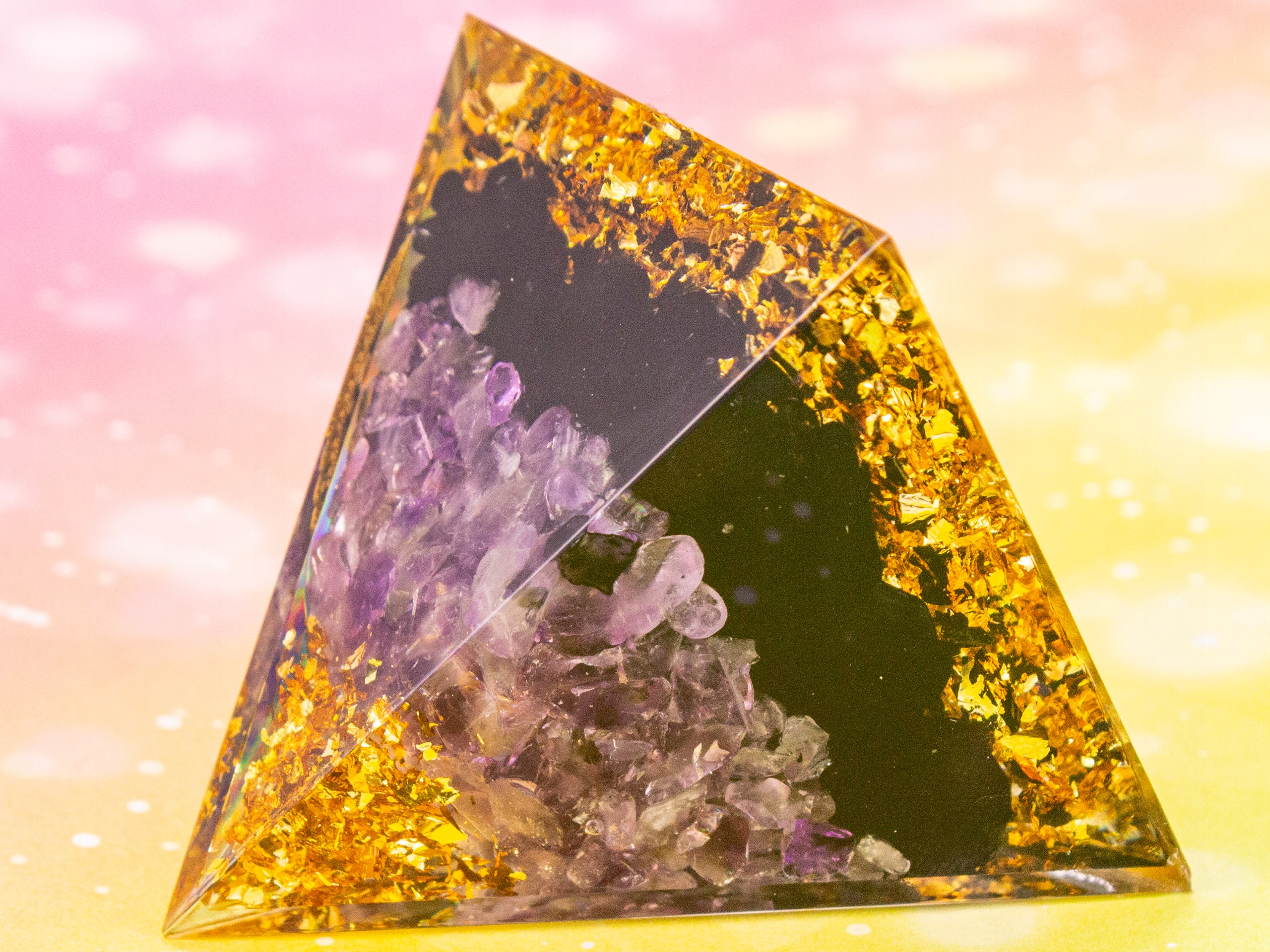 Эта оргонитовая пирамида, помимо своей мощи позитивное, целительное и успокаивающее действие также выглядит красиво благодаря погружению внутри кристаллы, минералы. жизнь красочный, уникальный и эстетичный.