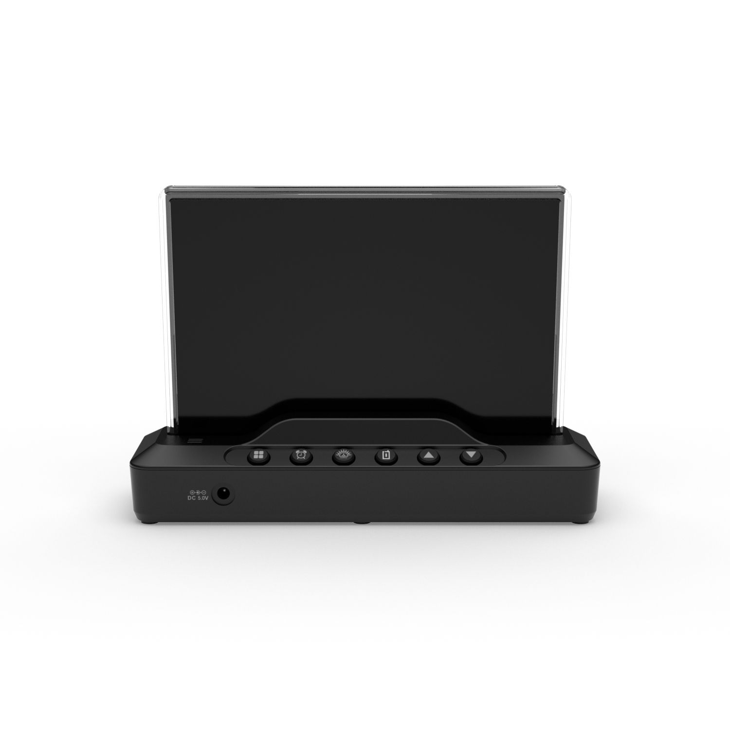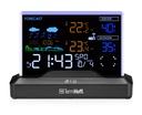 Wyświetlacz z czarną podstawą ukazuje minimalistyczny i nowoczesny design bezprzewodowej domowej stacji pogodowej, dzięki czemu pasuje do każdego wnętrza. Urządzenie cechuje się wieloma funkcjami, w tym wyświetlanie godziny, temperatury, wilgotności, ciśnienie barometryczne, fazę księżyca, prognozę, kalendarz i alarm.