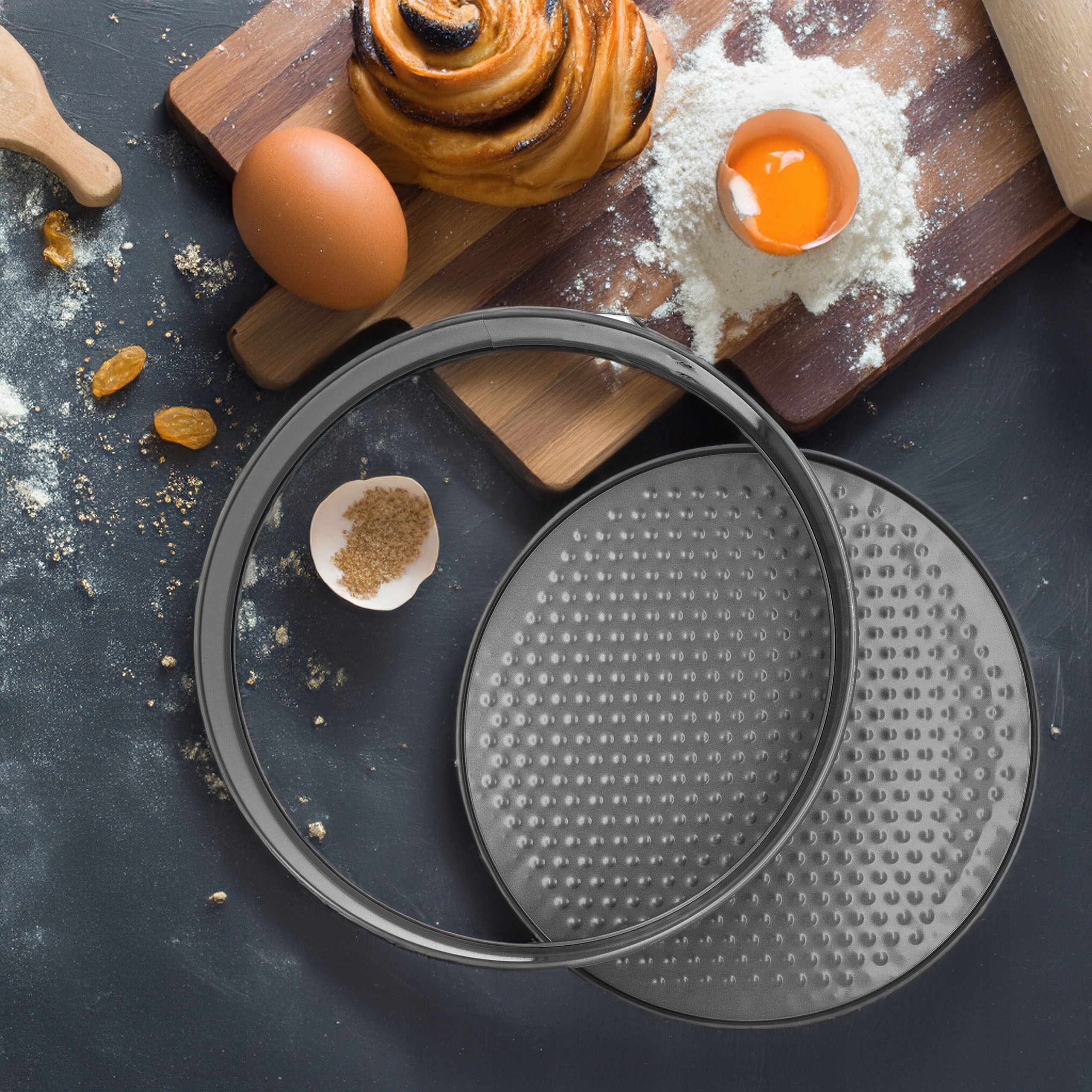 Набор из трех тортов-отличный выбор для всех любитель выпечки. Предлагая различные диаметры: 24 см, 26 см и 28 см, каждый найдет идеальный размер для вашего кулинарного творения. Изготовлен из прочной углеродистой стали и о высота 6,5 см, Эти формы обеспечат равномерную выпечку и легкое удаление тортов благодаря практичным застежкам.