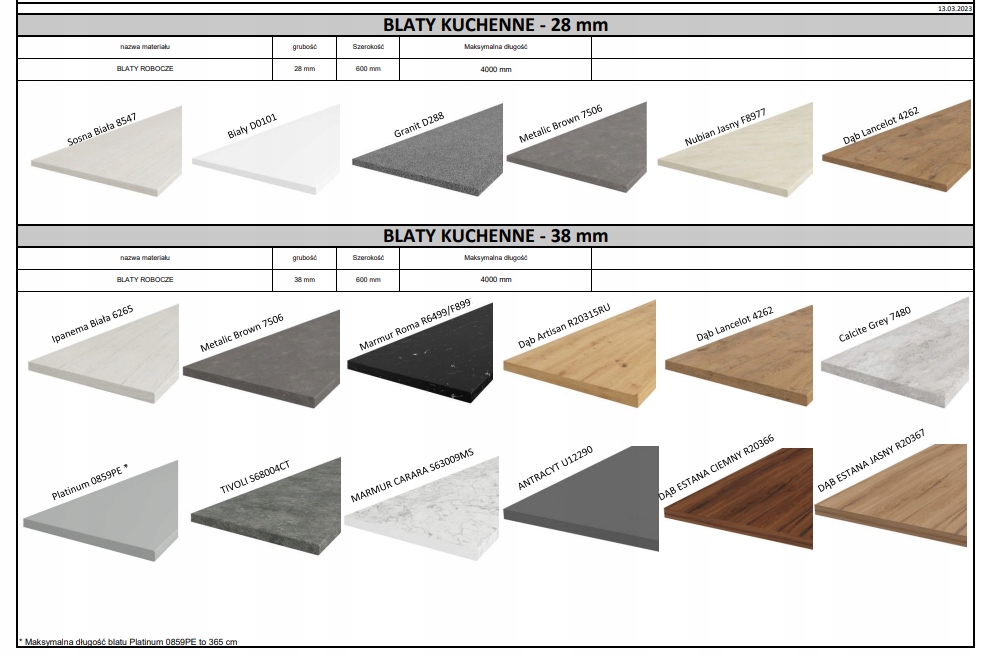 - Cokoły wysokości 15 cm, 3 X 200 cm, do samodzielnego docięcia.