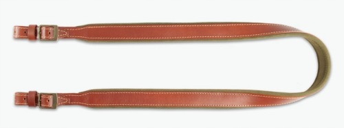 Prosty pasek wykonany ze skóry juchtowej w kolorze jasnobrązowym. Podszyty oliwkowym welurem. Wewnątrz wypełniony miękkim filcem dla zwiększenia komfortu noszenia