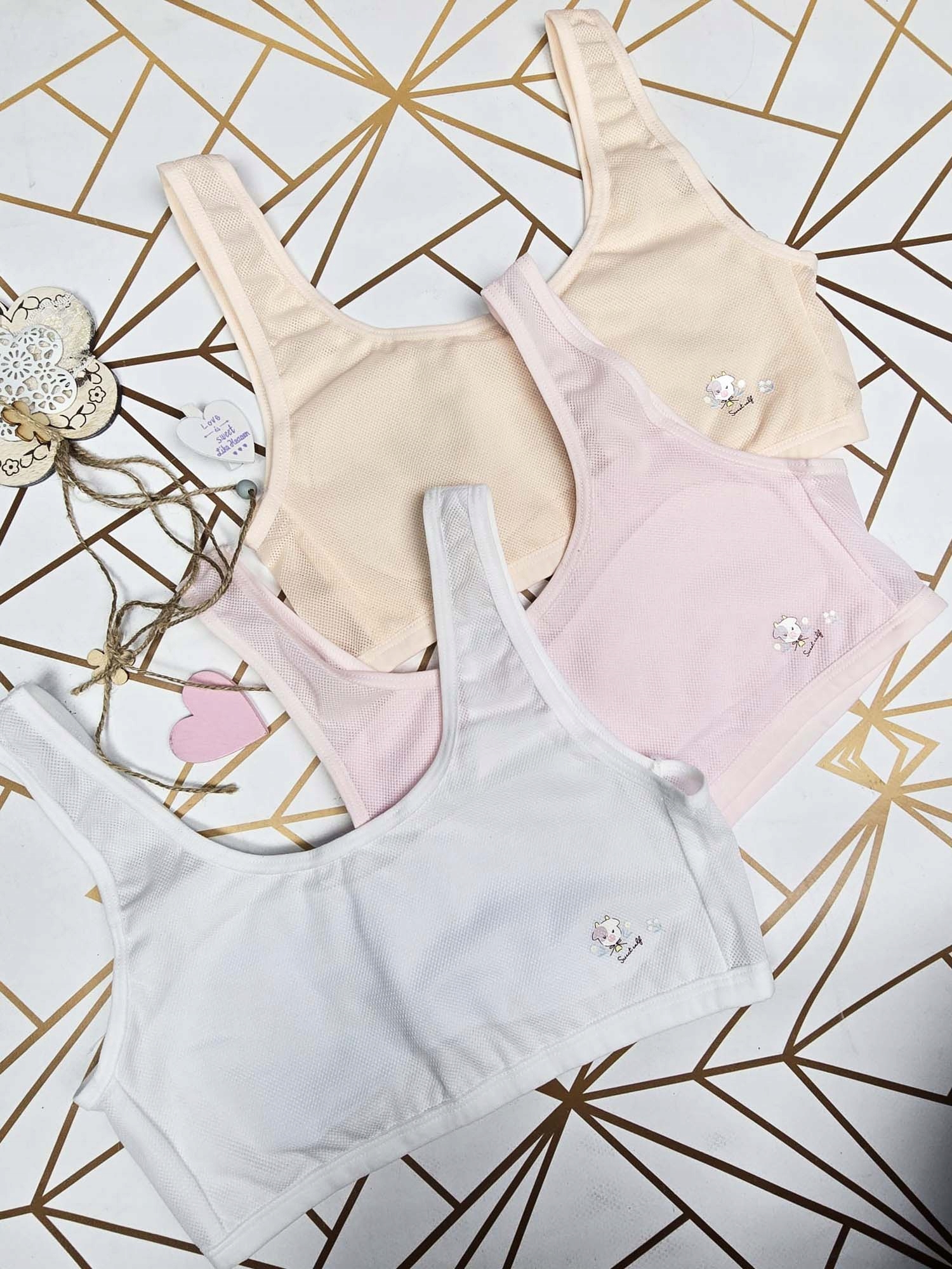 Ze względu na różną budowę dzieciaków, bardzo prosimy o kierowanie się wymiarami przy wyborze rozmiaru. Bielizna powinna być dobrze dopasowana, aby stanowiła komfort w użytkowaniu. Stanik mierzony na płasko bez naciągania.