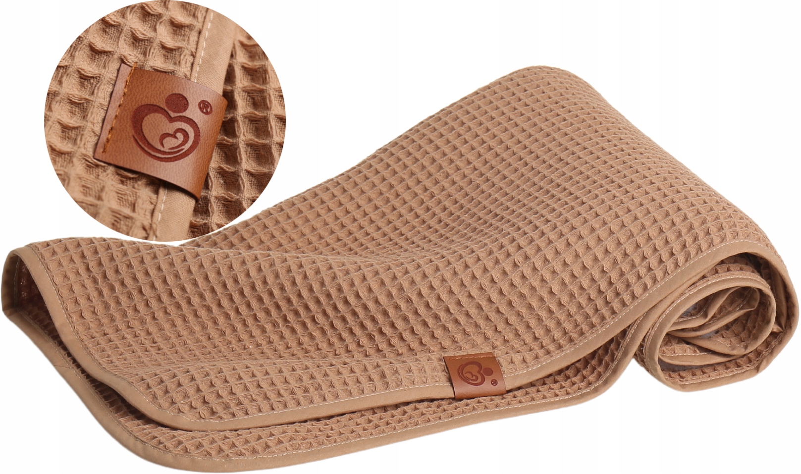 Uwaga:Po praniu kocyk może „pogłębić” swoją strukturę wafla. Podane wymiary odpowiadaja pomiarom nowego, nieużywanego kocyka. Można go prasować, co spowoduje, że stanie się bardziej gładki i płaski.
