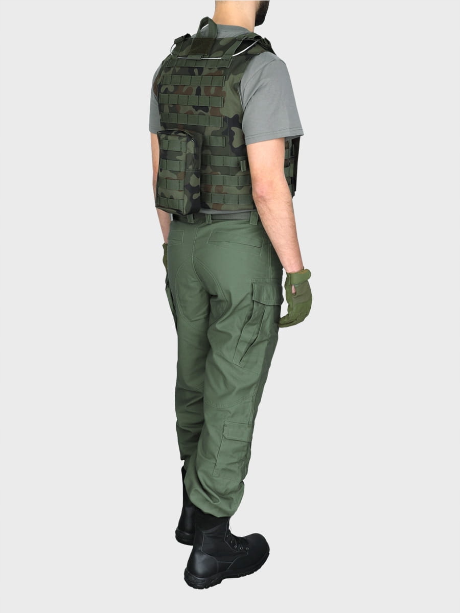 Konstrukcja opiera się na dwóch panelach – przednim i tylnym, w których można umieścić wkłady balistyczne. Panele na bokach spinane są ze sobą rzepami “na zakładkę” oraz taśmami z klamrami typu fastex, co umożliwia dopasowanie kamizelki w obwodzie. Ramiona paneli również zachodzą na siebie i spinane są rzepami oraz trokami, co pozwala na dopasowanie kamizelki w pionie.