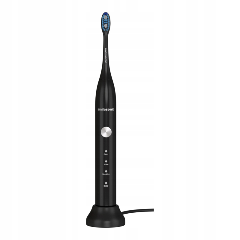 Szczoteczka soniczna Smilesonic GO Black potrafi oczyszczać jamę ustną z imponującą prędkością 96.000 ruchów na minutę. Na jej funkcjonalność niebagatelny wpływ mają trzy tryby pracy, a także dwie wymienne końcówki, które znajdziemy w zestawie ze szczoteczką. Urządzenie oferuje specjalny system automatycznej kontroli czasu, a także funkcję zapisywania ostatniego trybu pracy, dzięki czemu codzienne oczyszczanie jamy ustnej z drobnoustrojów jest zarówno skuteczne, jak i komfortowe. Pojemna bateria, którą znajdziemy w zestawie ze szczoteczką, pozwala nawet na dwa miesiące pracy bez konieczności podłączania urządzenia do ładowarki.