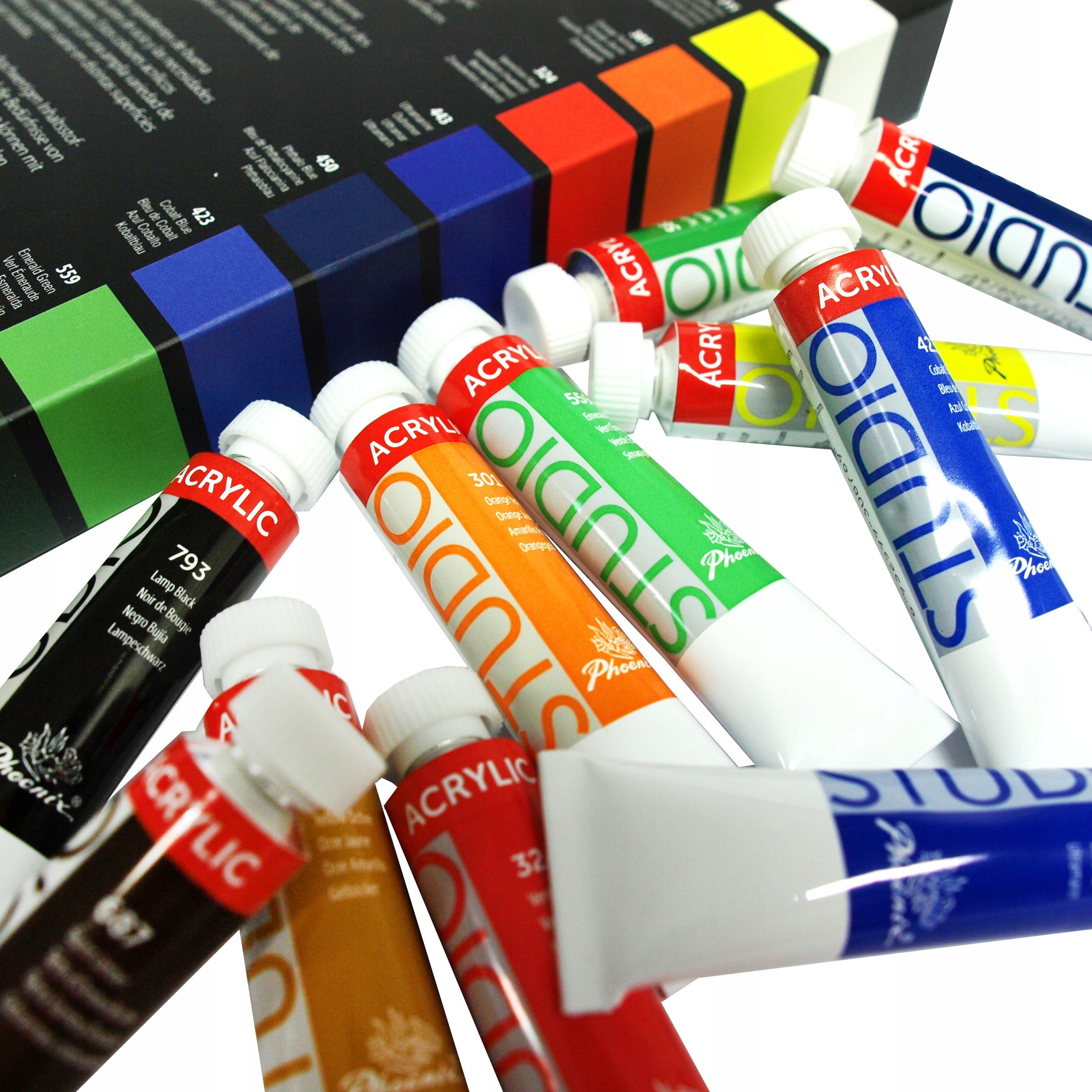 Wyprodukowane z bardzo dobrej jakości pigmentów. Farby mają żywe kolory i szybki czas schnięcia.