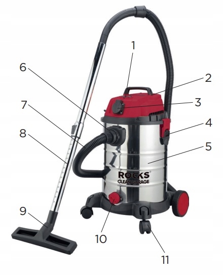 Praca na mokro: Odkurzacz może zbierać wodę i mokre zanieczyszczenia. Specjalny zawór bezpieczeństwa przerywa pracę, jeśli w zbiorniku jest za dużo wody. Używaj wyłącznie filtra zgrubnego z gąbki, nie używaj filtra HEPA oraz worków papierowych i wielorazowych na kurz.