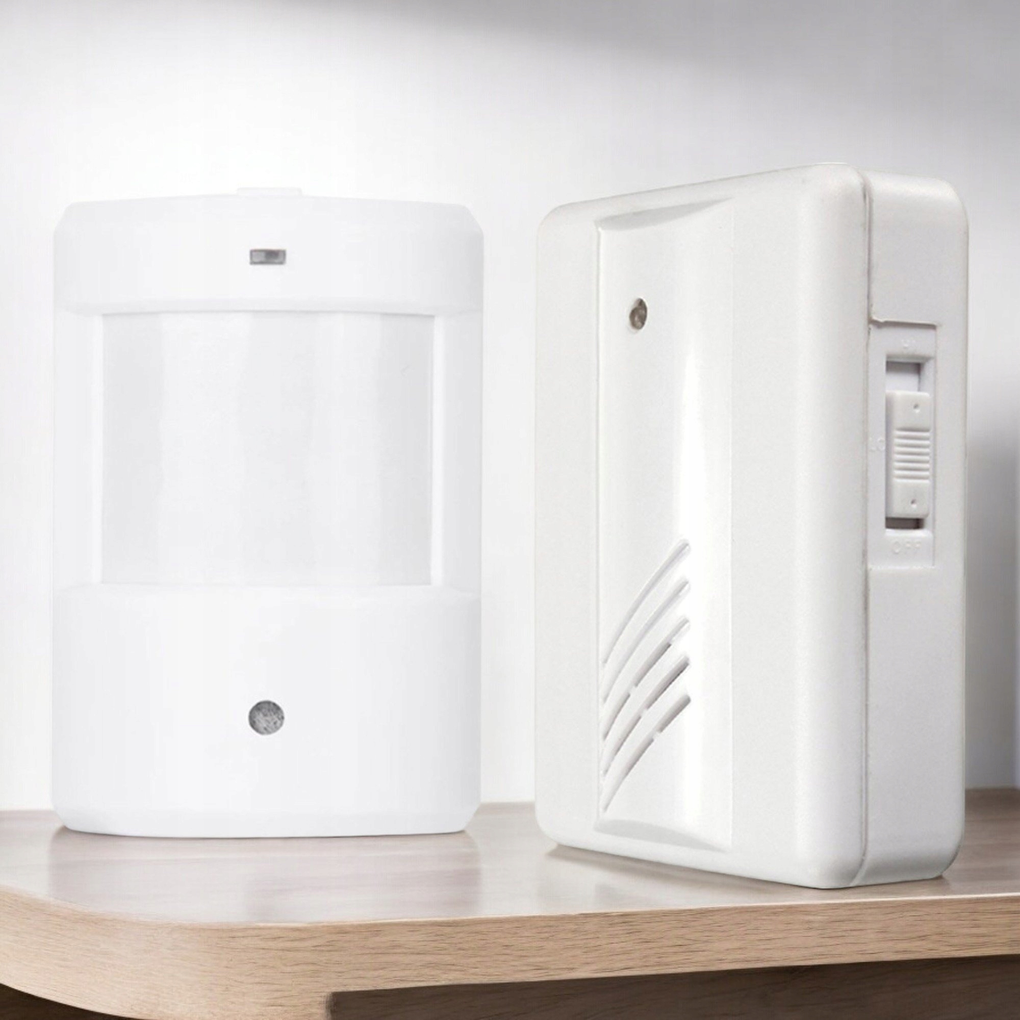 Czujnik ruchu umożliwiający np. kontrolę drzwi wejściowych. które znajdują się w innym pomieszczeniu lub budynku. Zainstalowanie czujnika ruchu na zewnątrz budynku pozwala nam na kontrolę ruchu w polu jego widzenia. Zestaw jest zasilany bateriami - nie wymaga zakładania jakichkolwiek kabli.